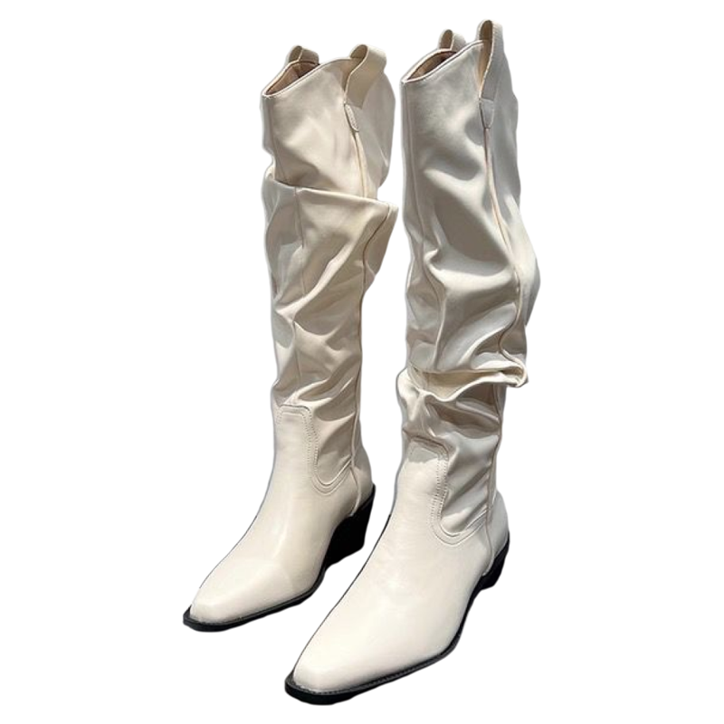 褶皱堆堆靴长筒骑士靴女2025秋冬新款粗跟西部瘦瘦靴不过膝长靴子