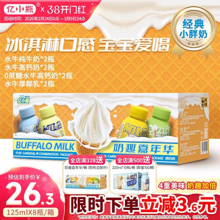 亿小瓶奶趣嘉年华125ml*8瓶水牛纯牛奶高钙厚椰乳儿童早餐奶组合