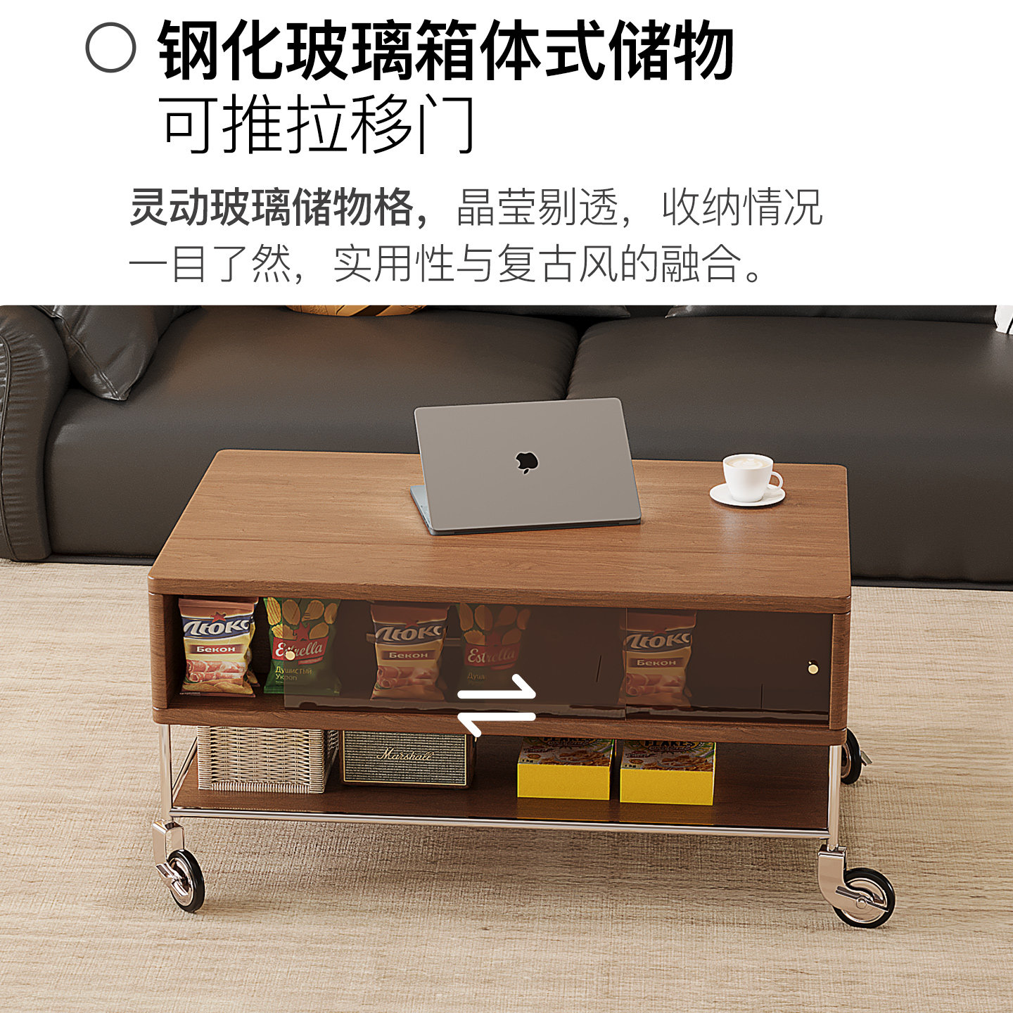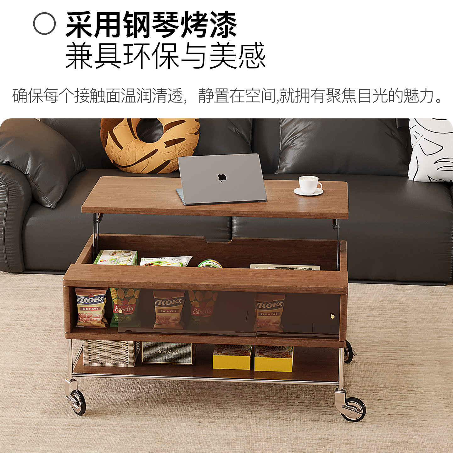 中古风茶几可移动升降小户型客厅家用多功能小推车茶桌实木小桌子