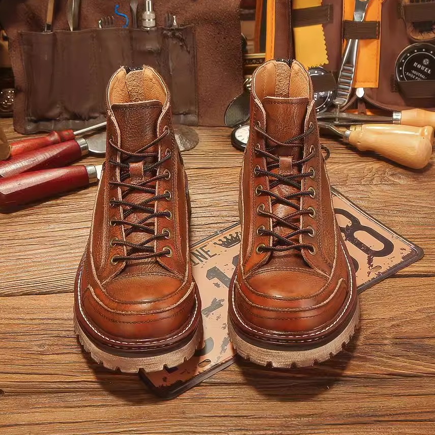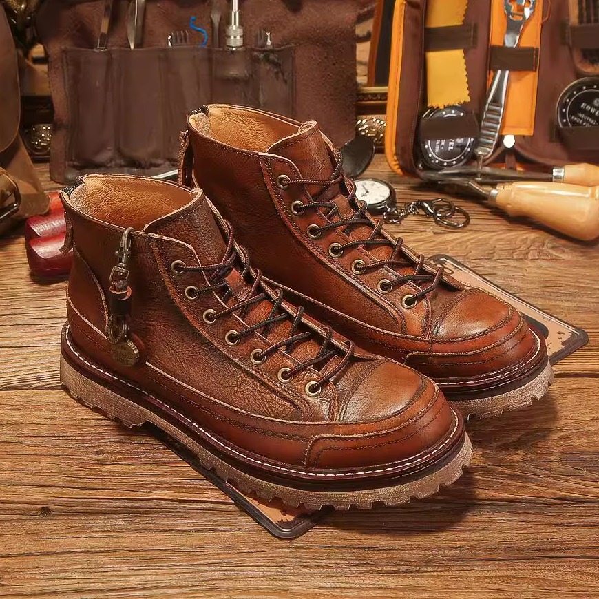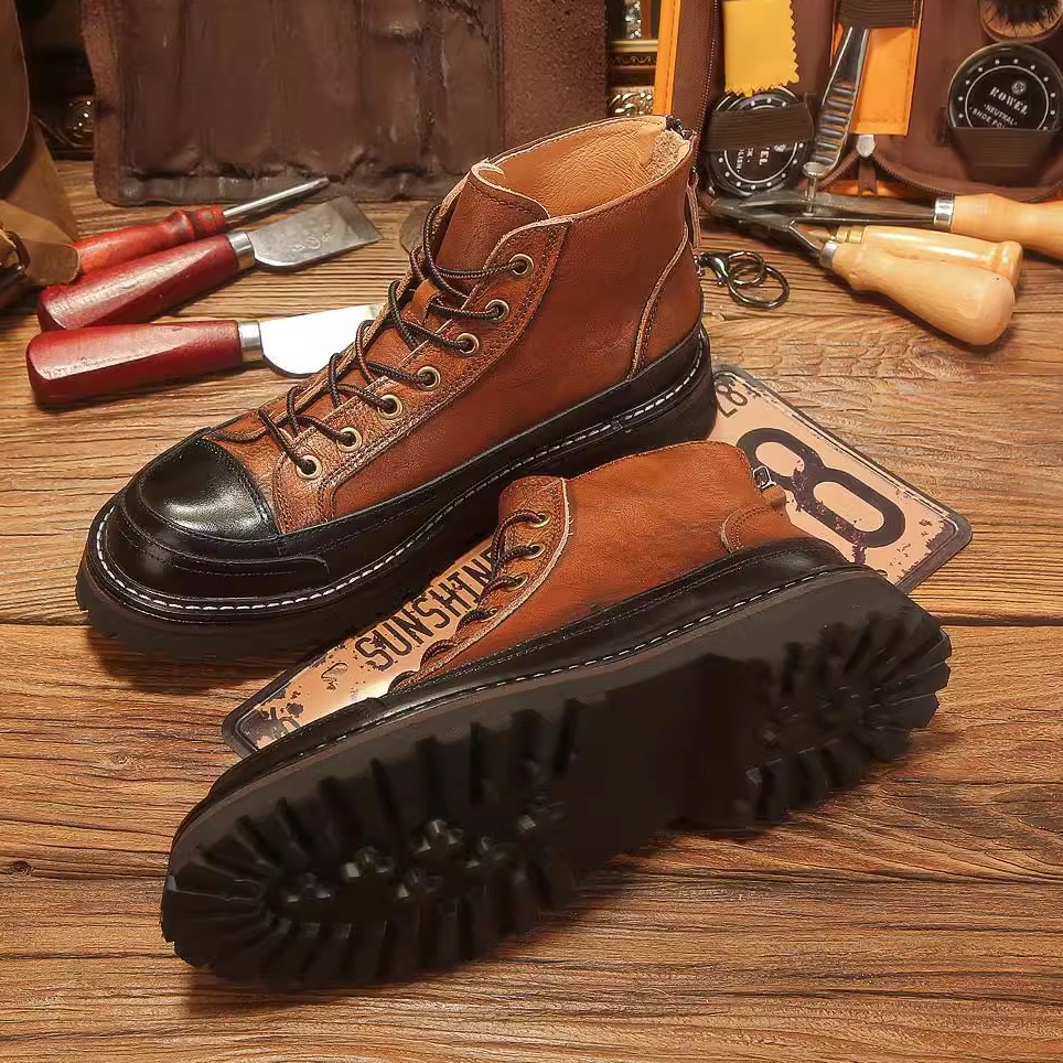 2025秋季新款马丁靴男高帮英伦风真皮皮鞋休闲头层牛皮工装靴拉链