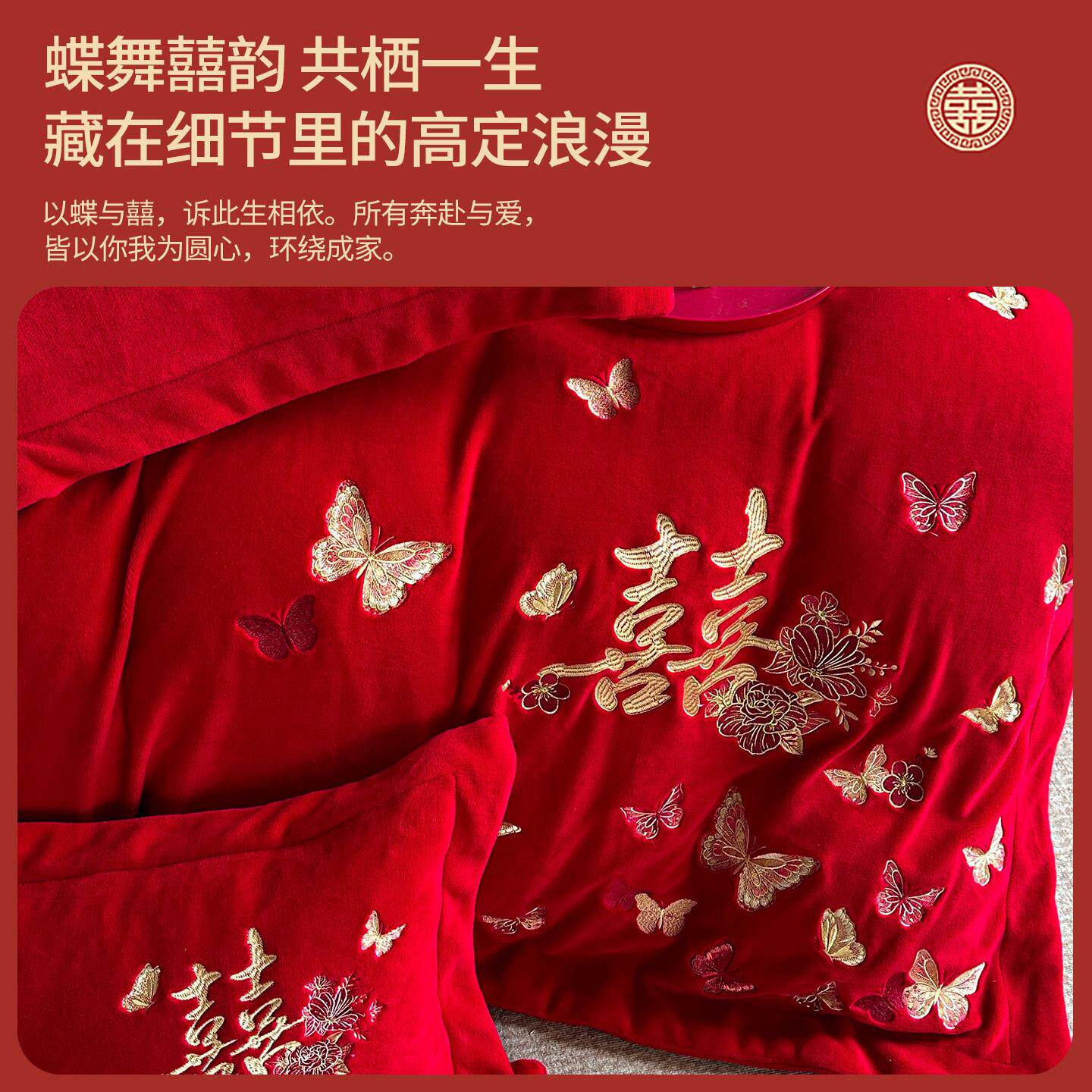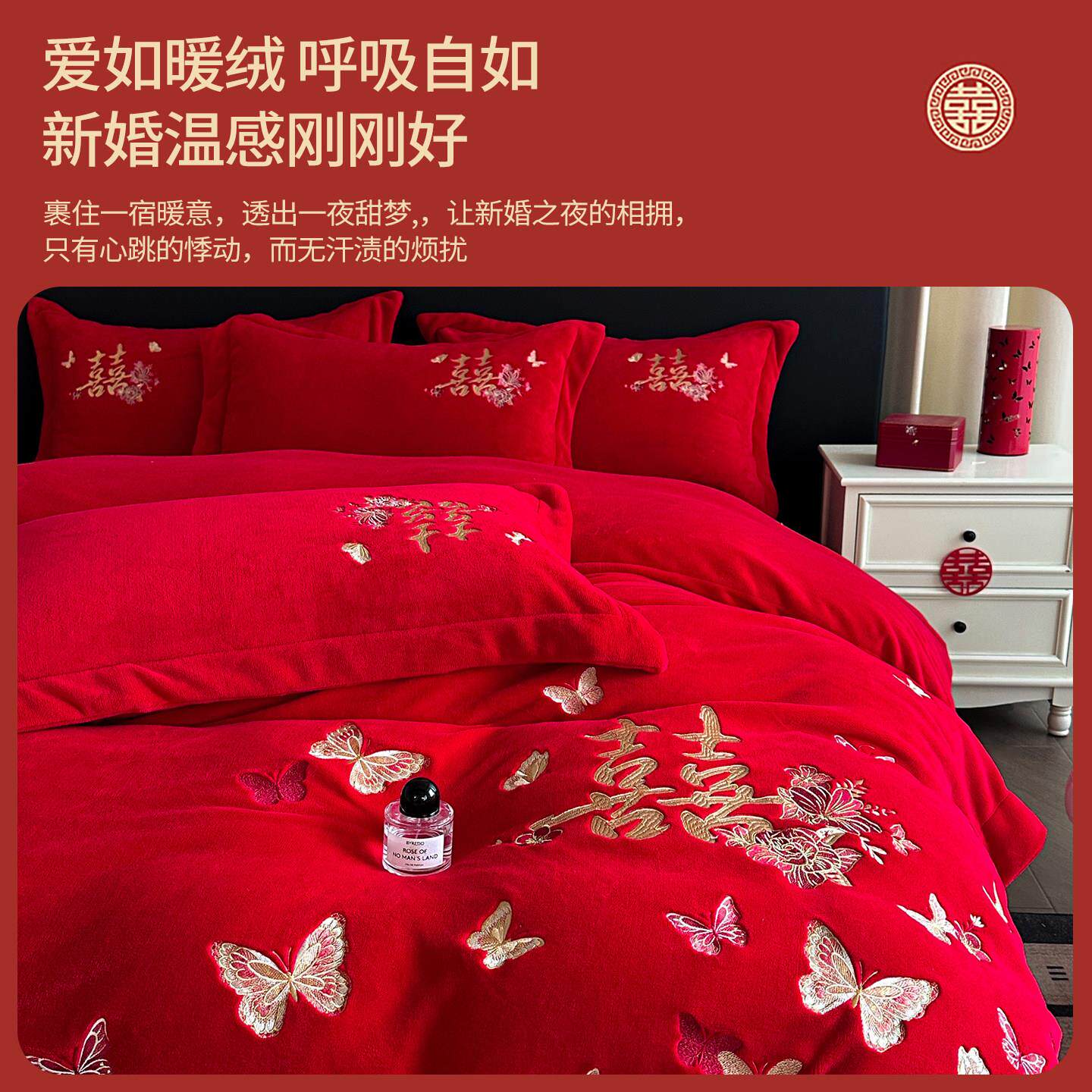 婚庆牛奶绒结婚四件套冬季珊瑚绒大红色陪嫁喜被床单被套新婚床品