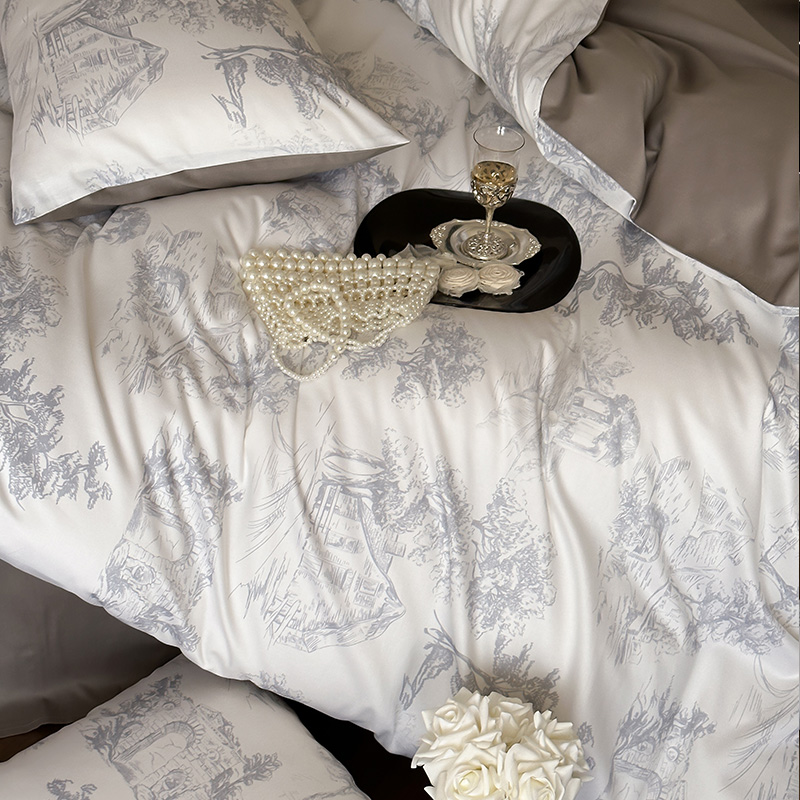 60S云柔天丝棉磨毛四件套轻奢数码印花被套床单床上用品