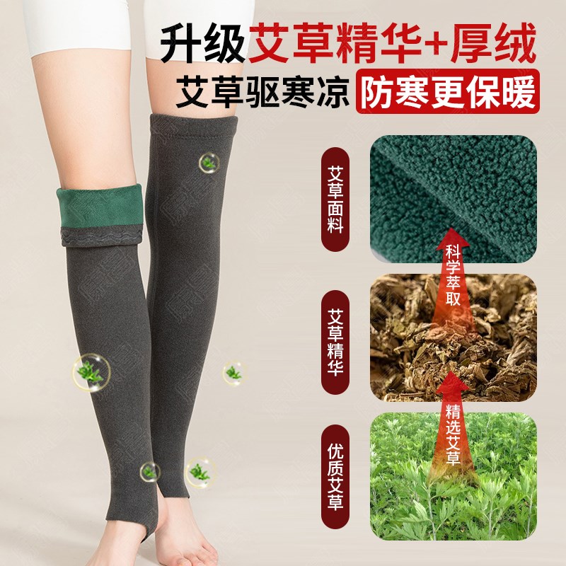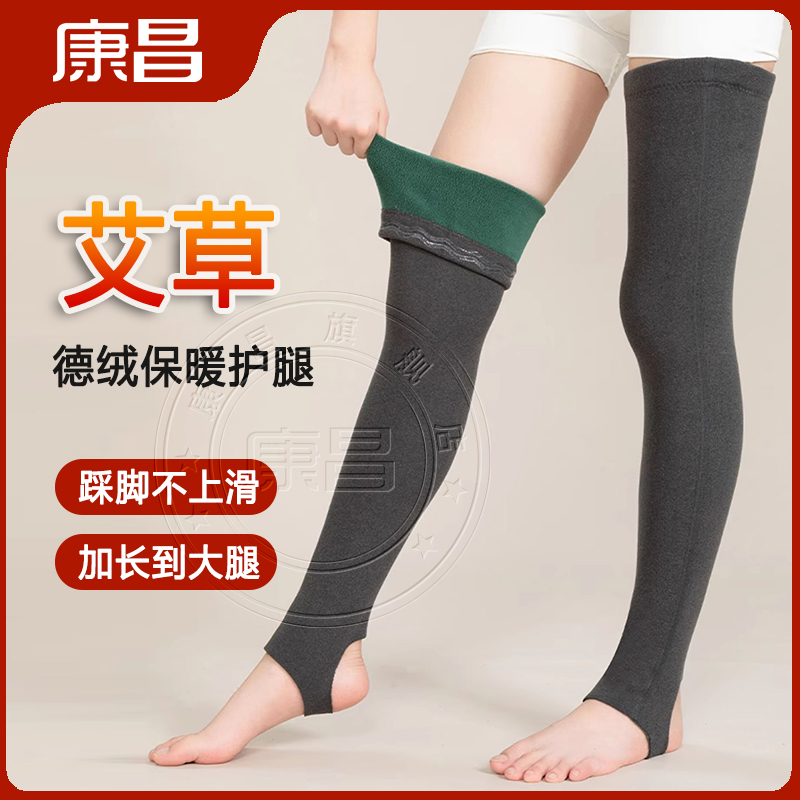 艾绒加长护腿护膝长筒袜保暖老寒腿男女士关节踩脚套秋冬加厚防滑