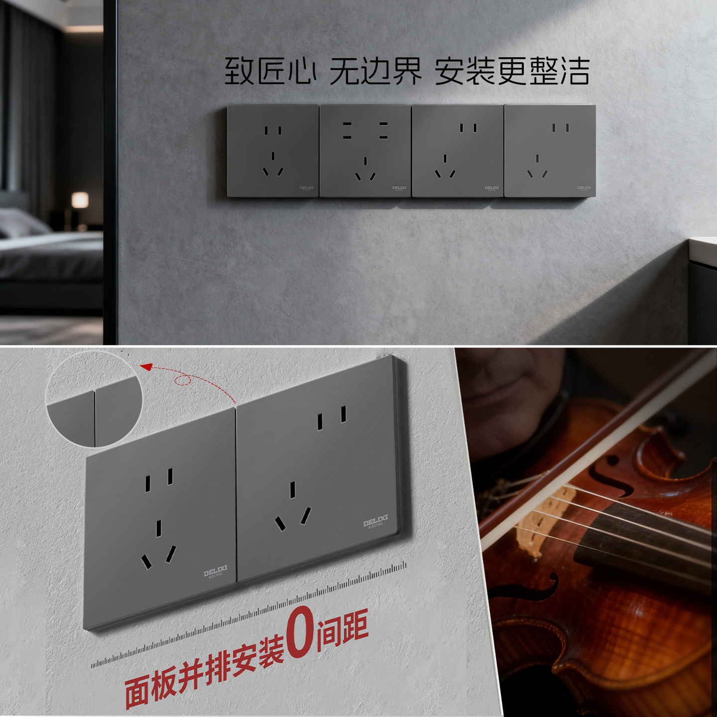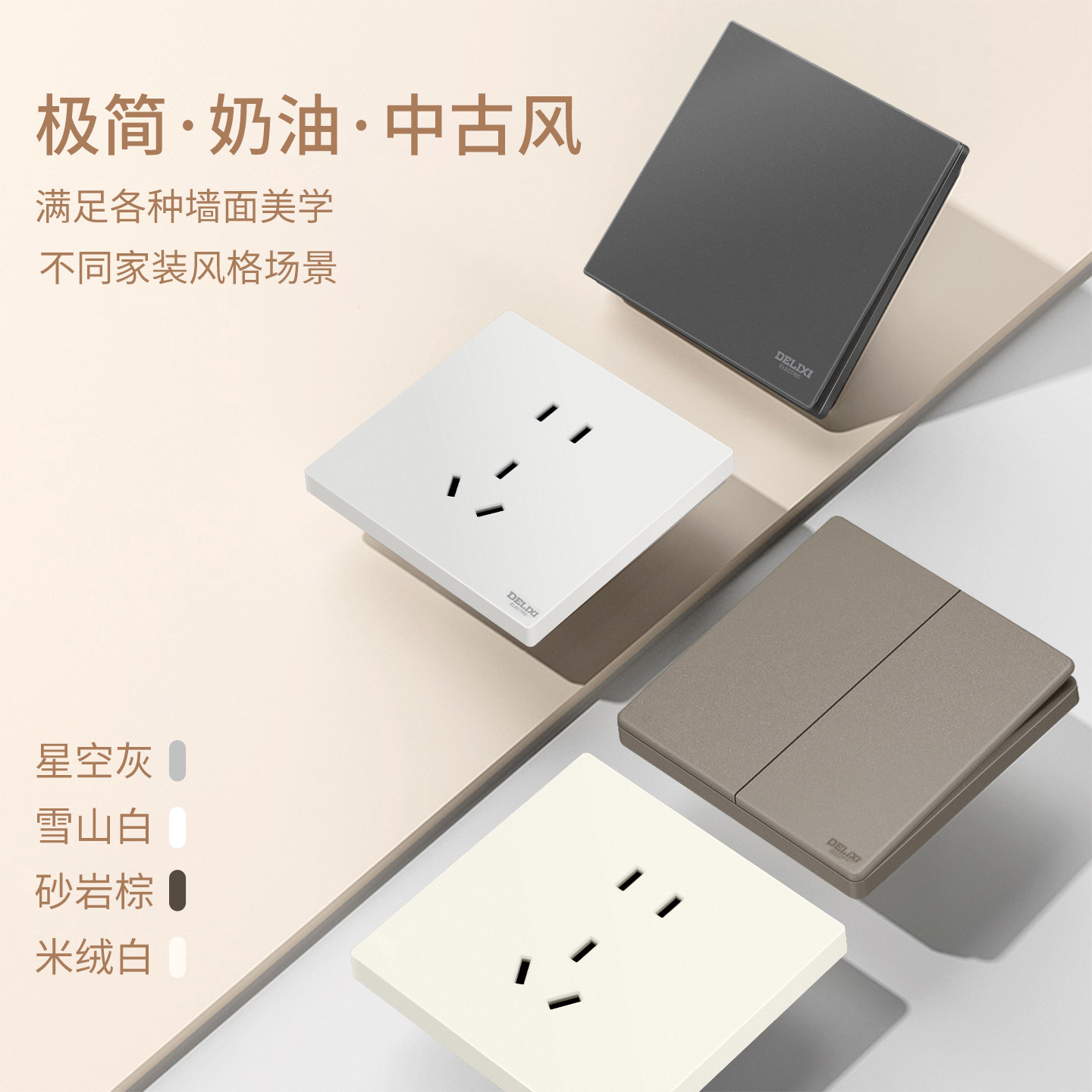 德力西开关插座官方旗舰店哑光86型五孔面板暗装816星空灰色正品