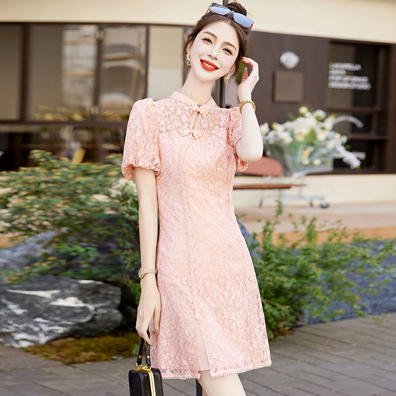 新中式蕾丝改良旗袍连衣裙女