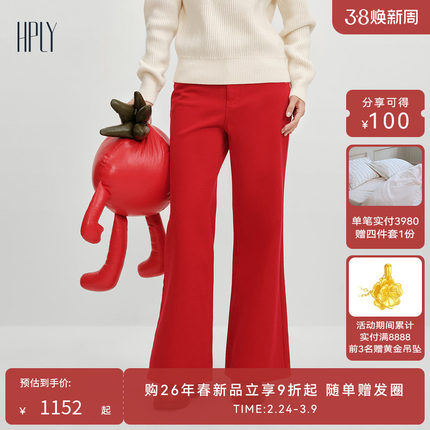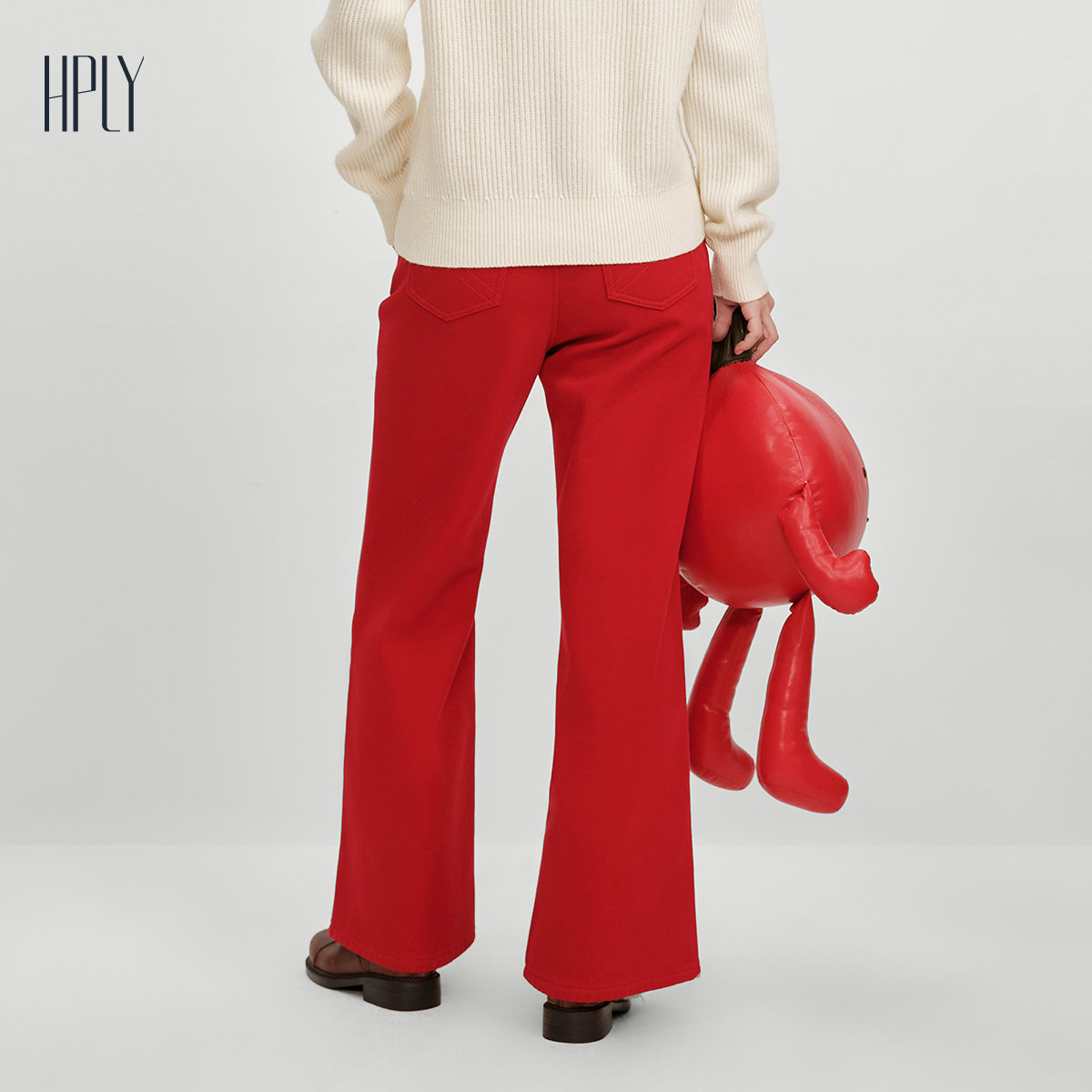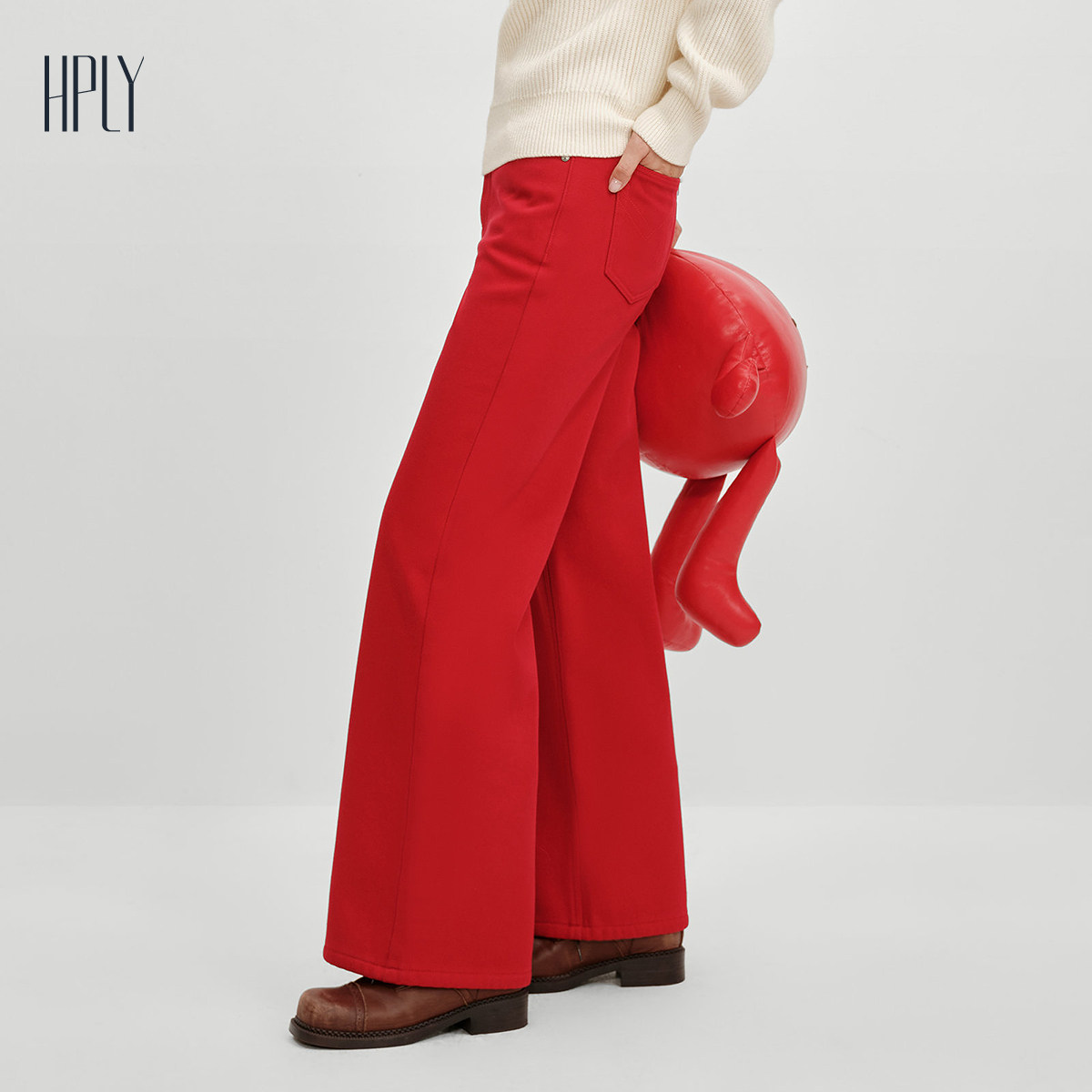 【商场同款】HPLY荷比俪2025冬新款内侧加绒直筒阔腿松弛感牛仔裤