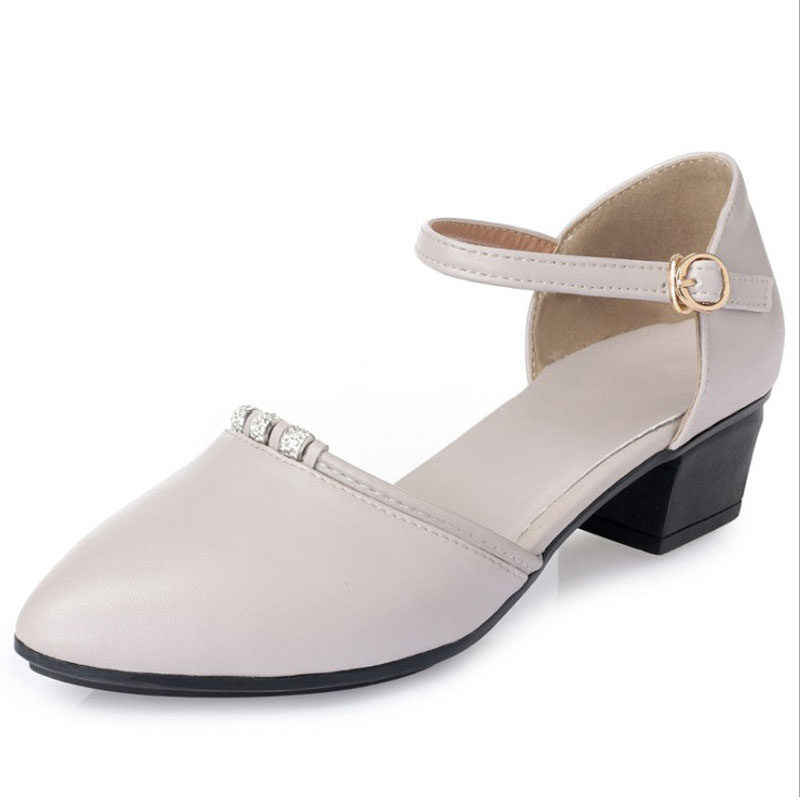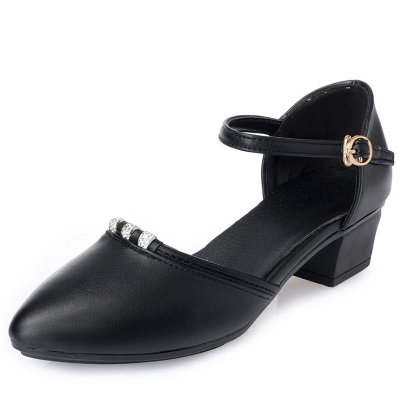 外贸真皮女鞋特大号41 43包头凉鞋中跟防滑妈妈鞋37 38韩版女单鞋