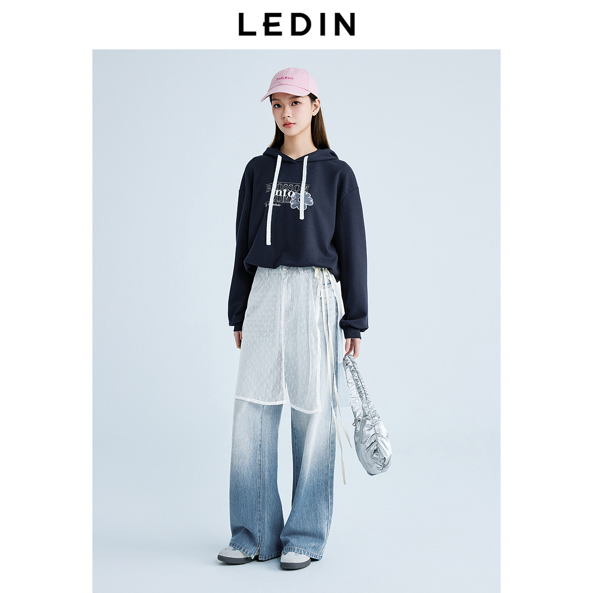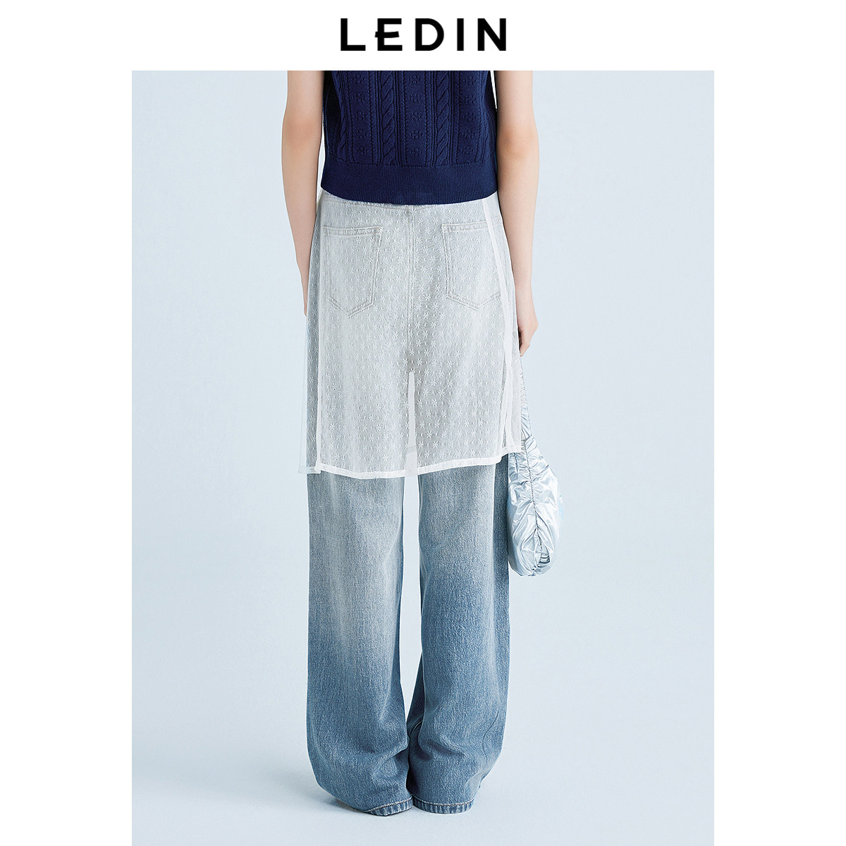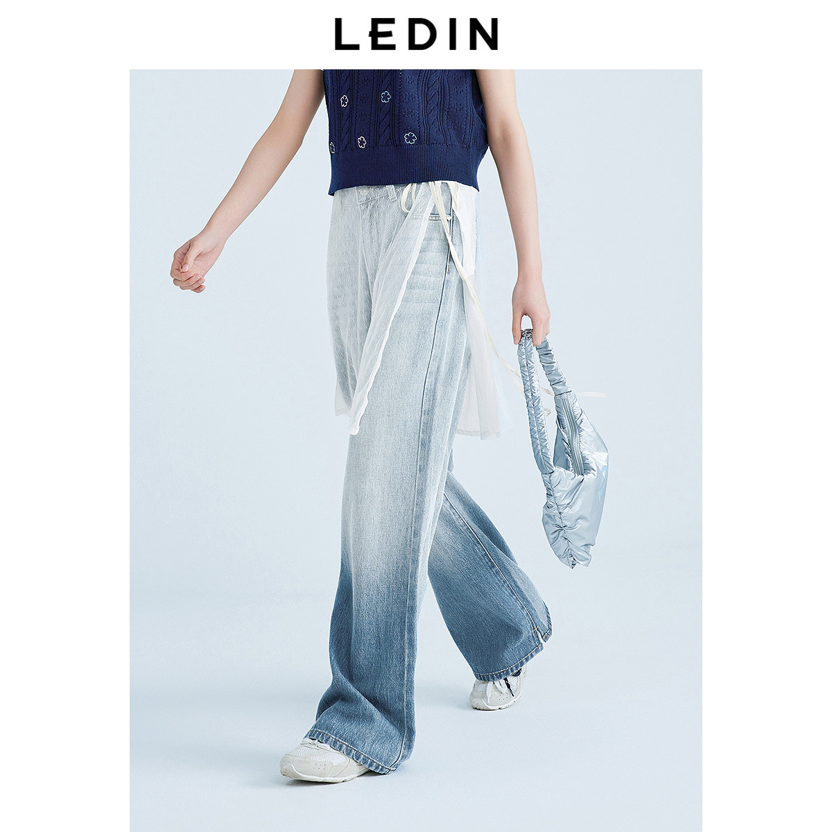 【商场同款】乐町25春新款渐变洗水牛仔阔腿裤高腰裤子C1HAF1423*