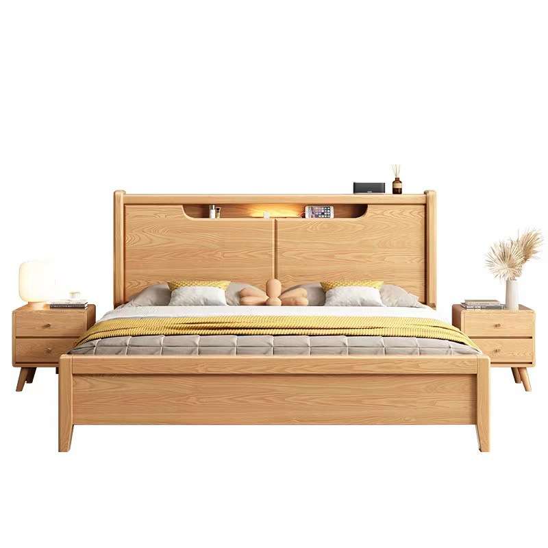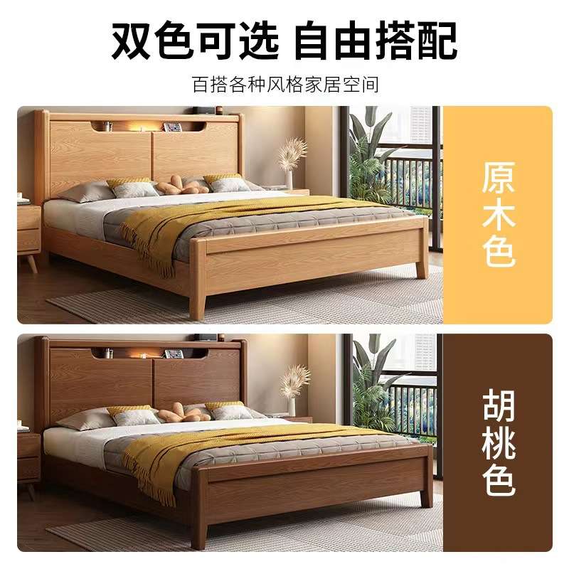 白蜡木实木床现代简约轻奢1.8米储物大床1.5米小户型出租房婚床