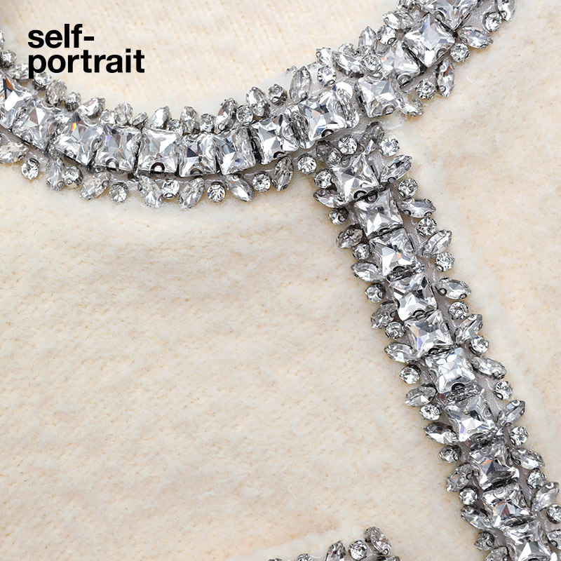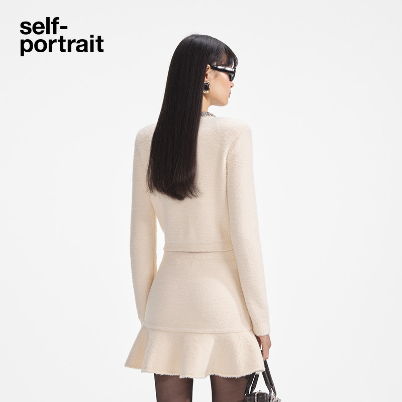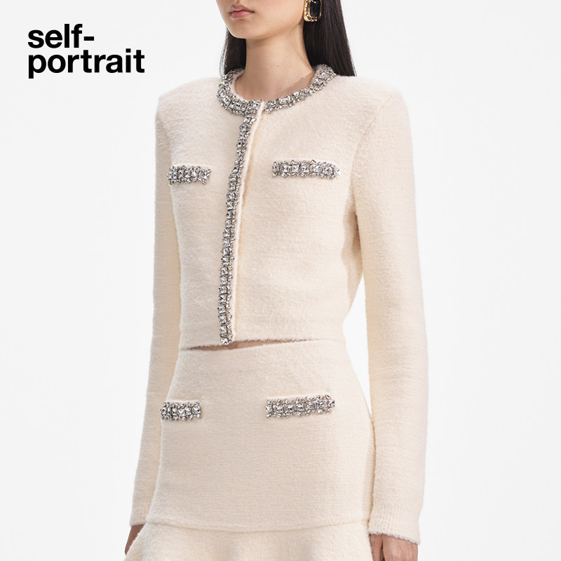 self-portrait 2025早春象牙白甜美香风钻饰针织外套开衫