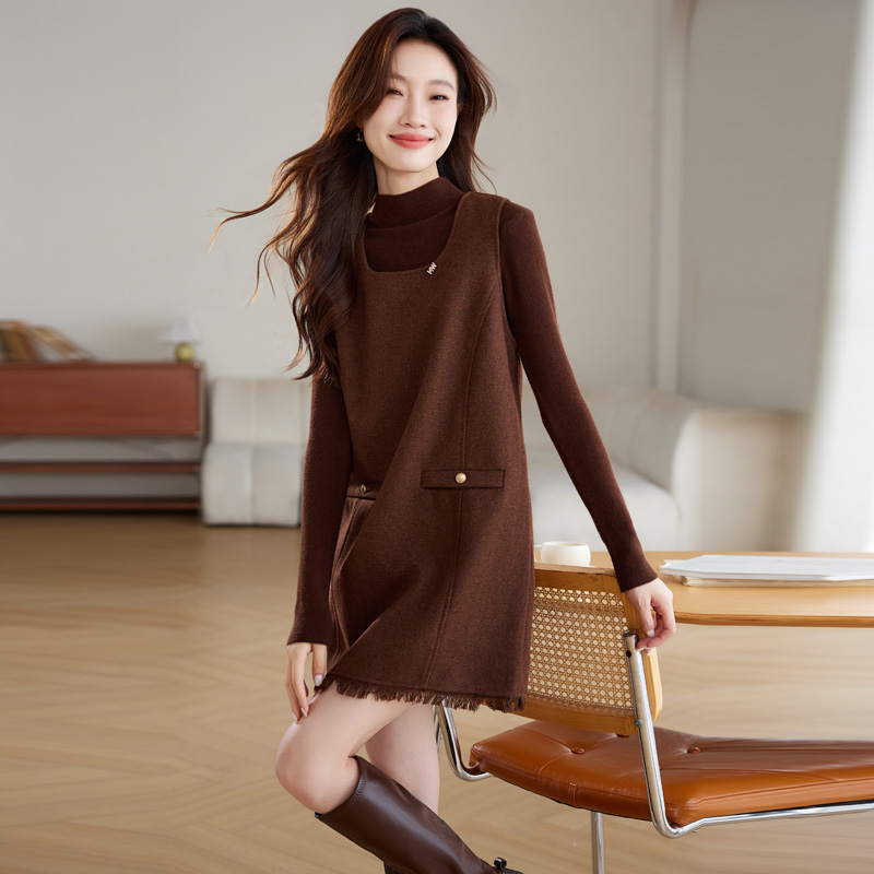 轻熟连衣裙穿搭一整套装女2024秋冬季新款高端配大衣打底裙两件套