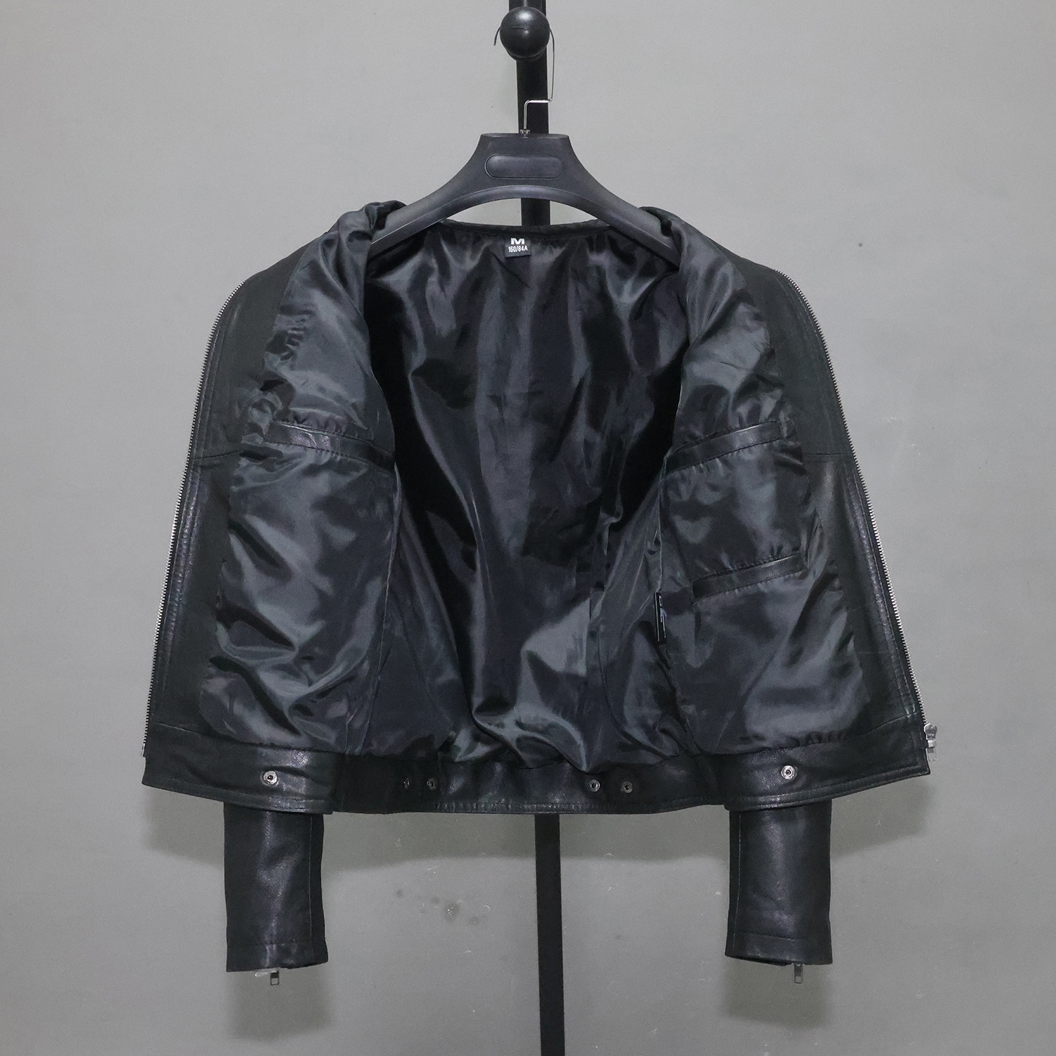 轻洗柔化植鞣头层绵羊真皮皮衣女修身短款立领休闲时装夹克外套平