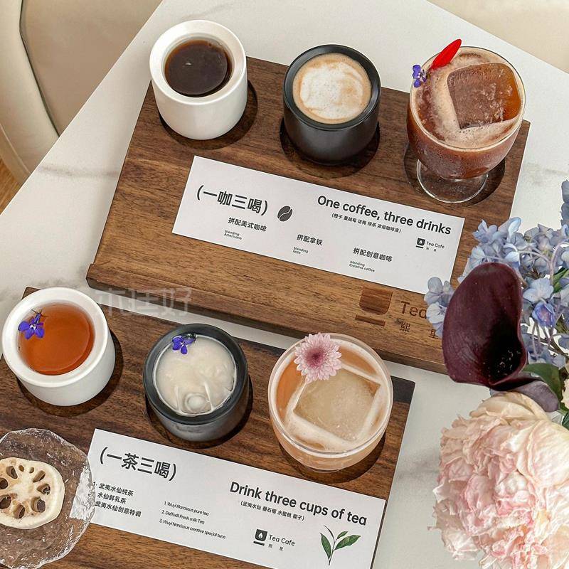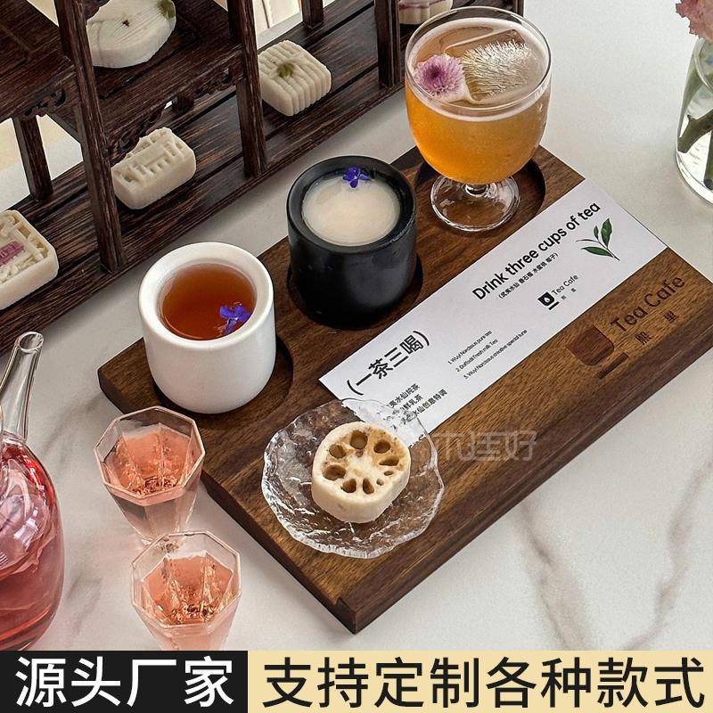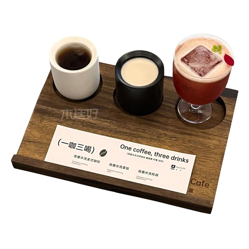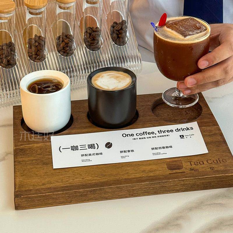 实木咖啡杯托盘一豆三喝杯盘创意三孔咖啡木托盘一茶三喝杯盘茶托