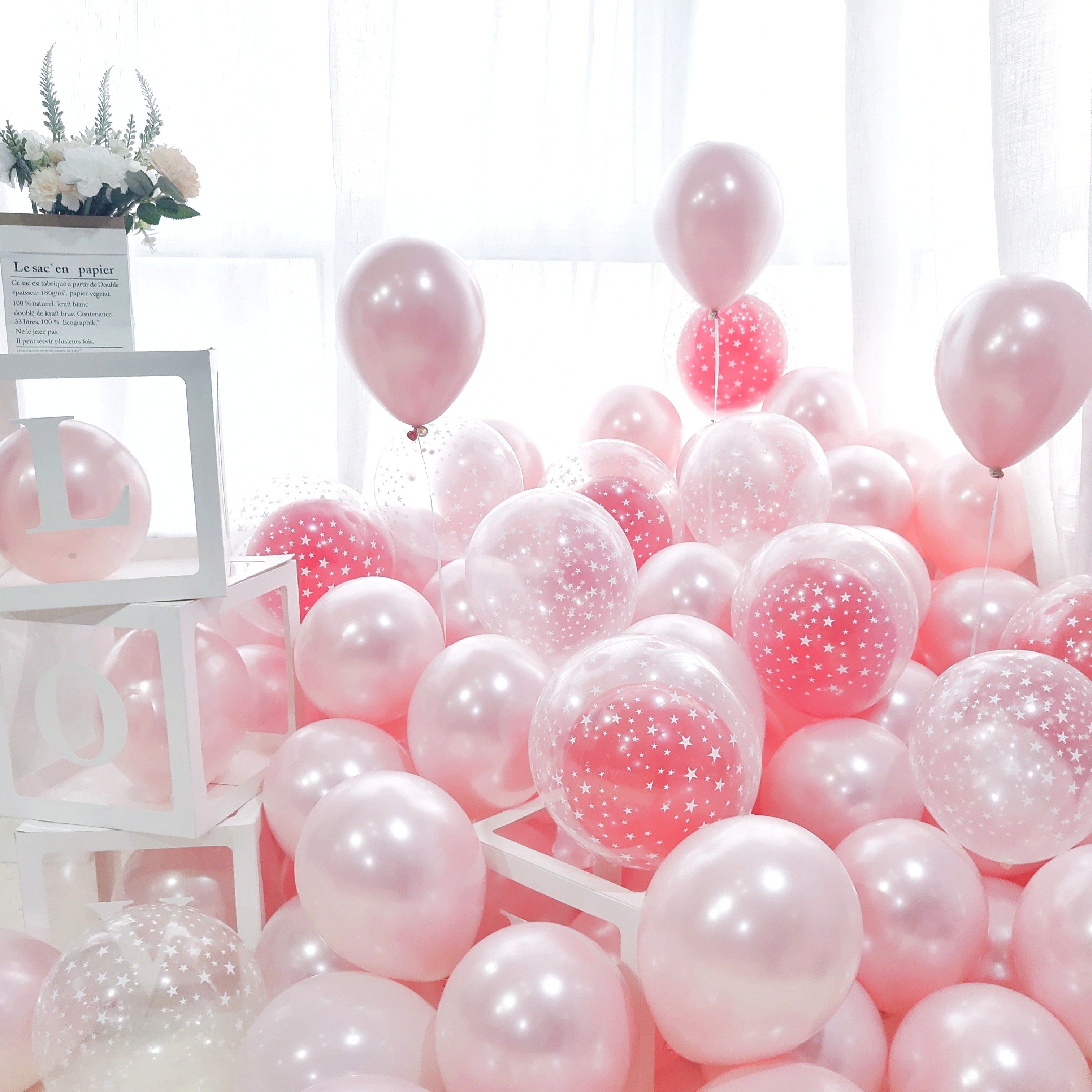 粉色珠光加厚气球儿童女孩周岁生日装饰场景布置女生求婚婚房汽球