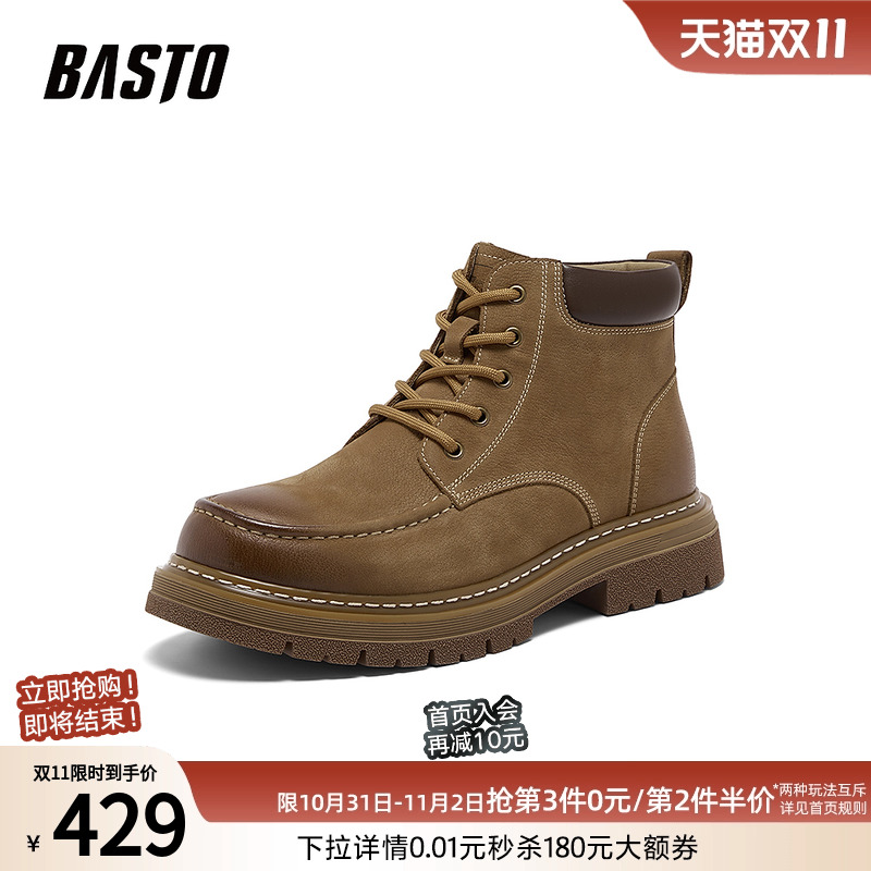 百思图2025冬季商场新款加绒保暖马丁靴户外工装靴男短靴WF519DD5