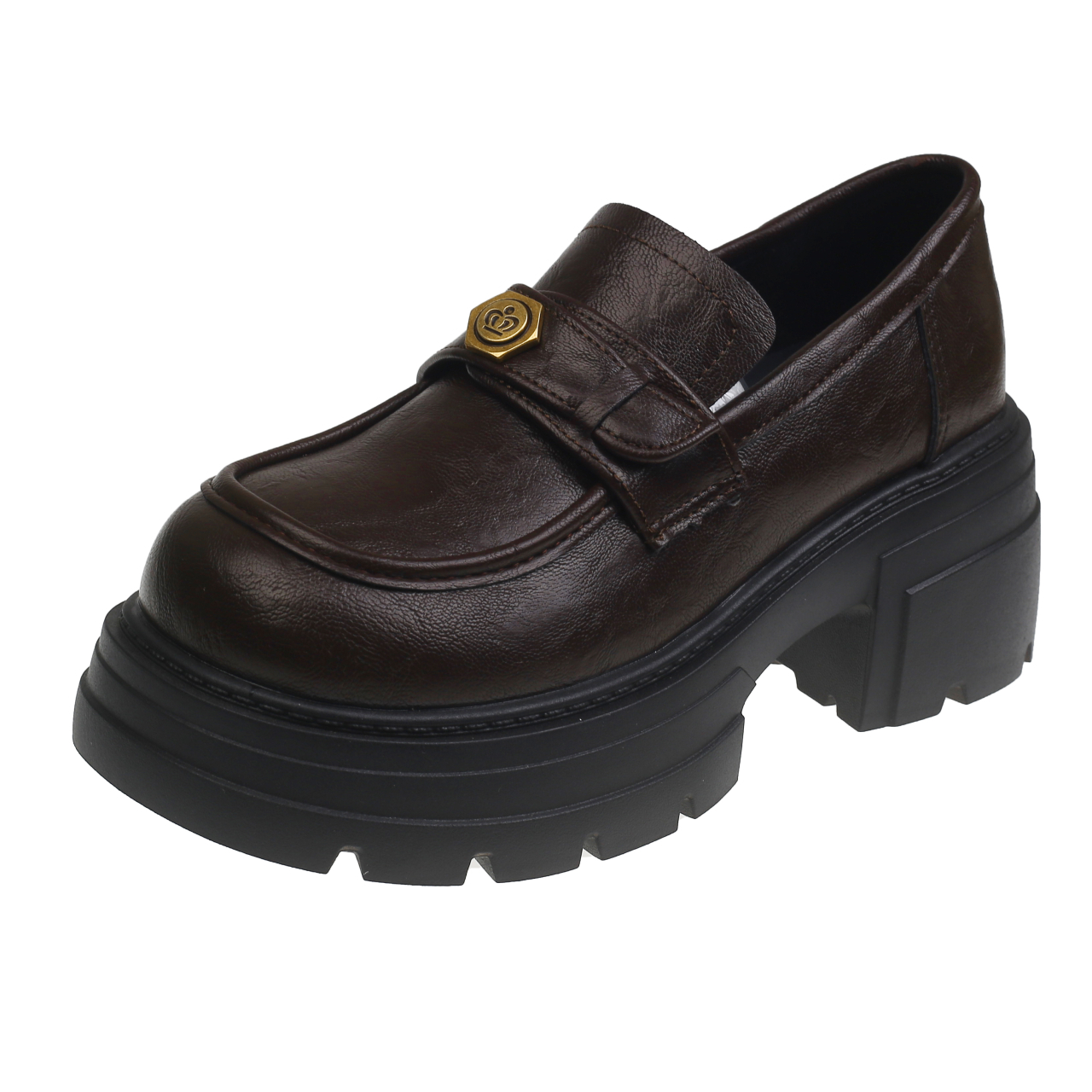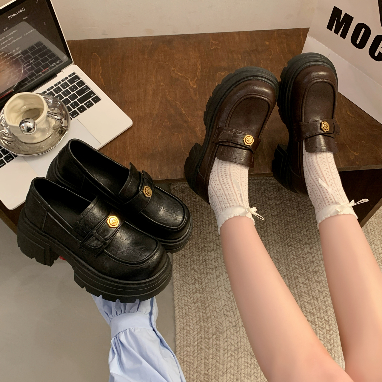 厚底粗跟乐福鞋女2025新款春秋季英伦风小皮鞋一脚蹬增高女鞋单鞋