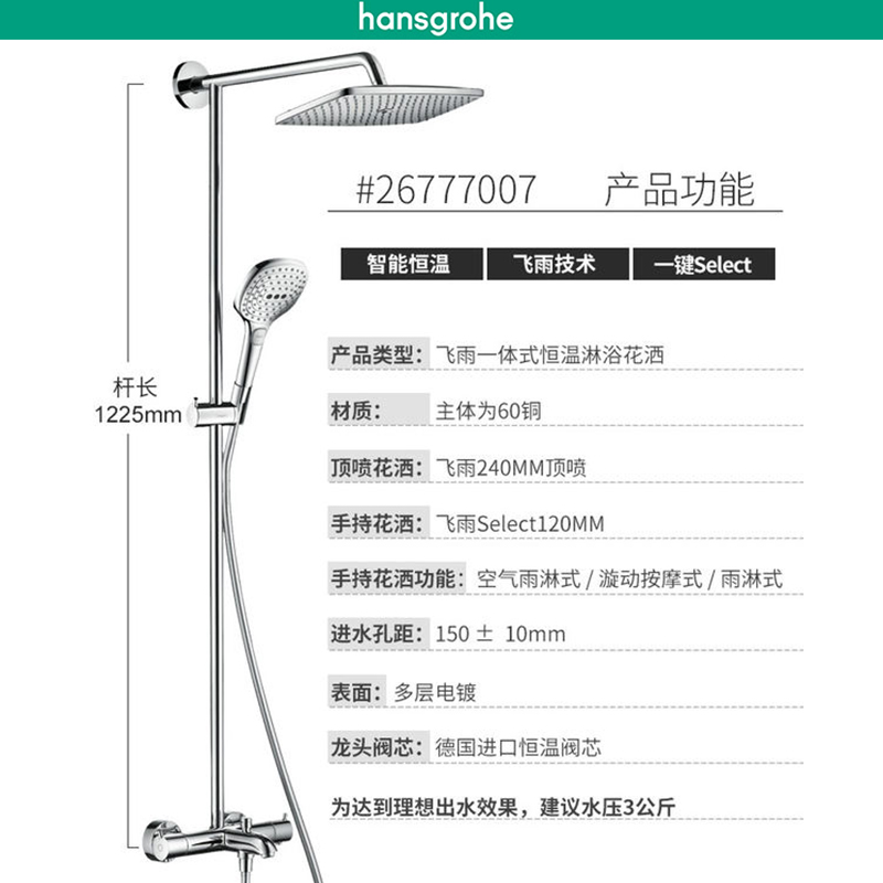 汉斯格雅hansgrohe飞雨E240恒温淋浴花洒淋浴柱方顶喷26777/27227