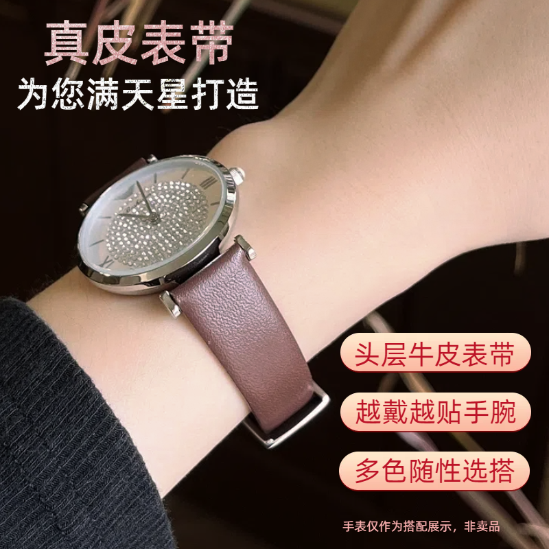 适用阿玛尼白月光AR1763 1764满天星简约牛皮女表表带10 14mm真皮
