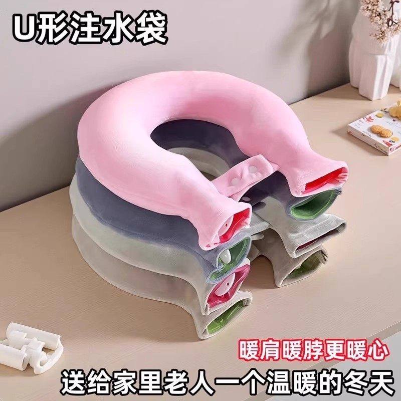 热水袋U型颈椎热敷注水灌水肩颈头部暖宝宝防爆加厚挂脖围脖枕头