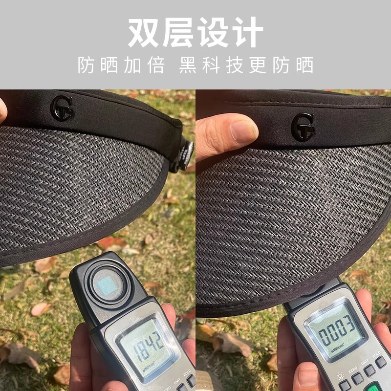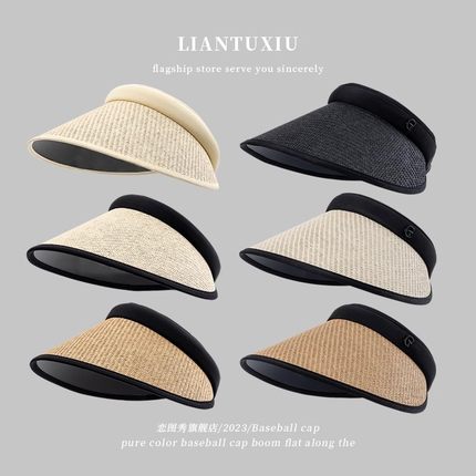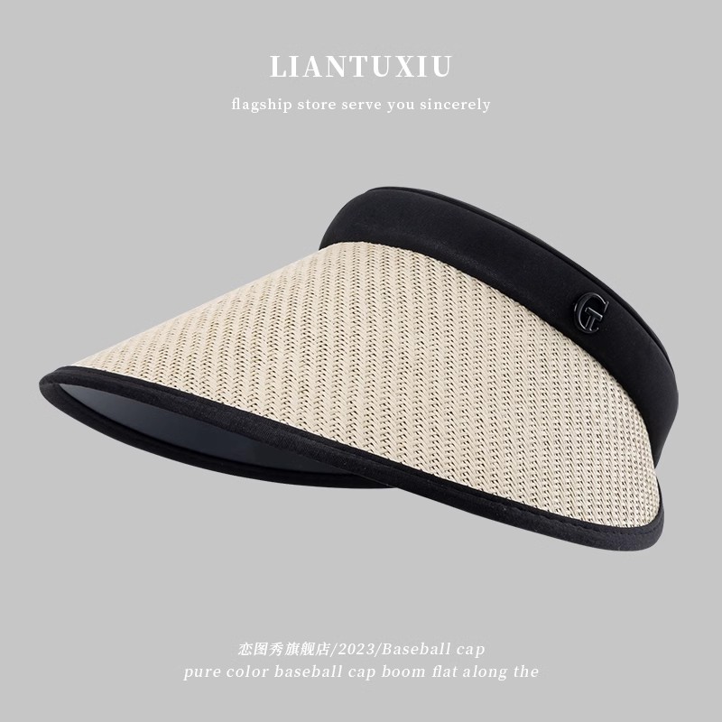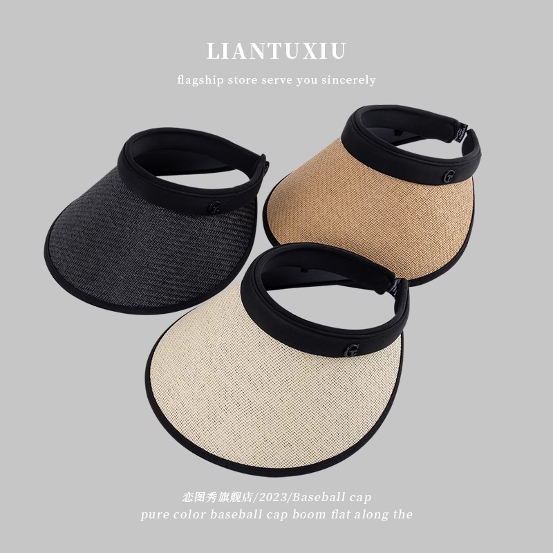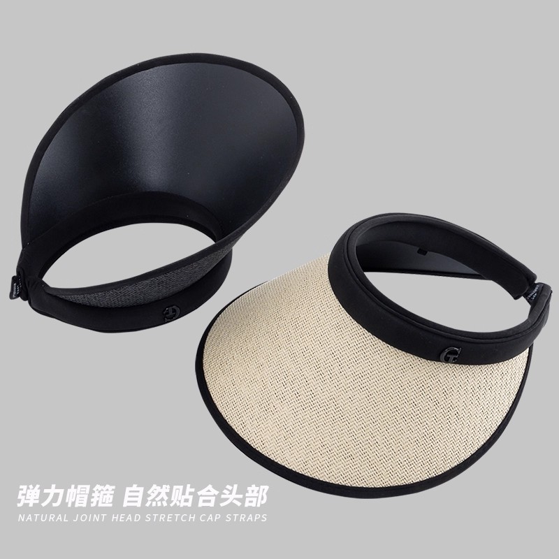 空顶草帽女夏季骑车2025新款防晒太阳帽子防紫外线大沿黑胶遮阳帽