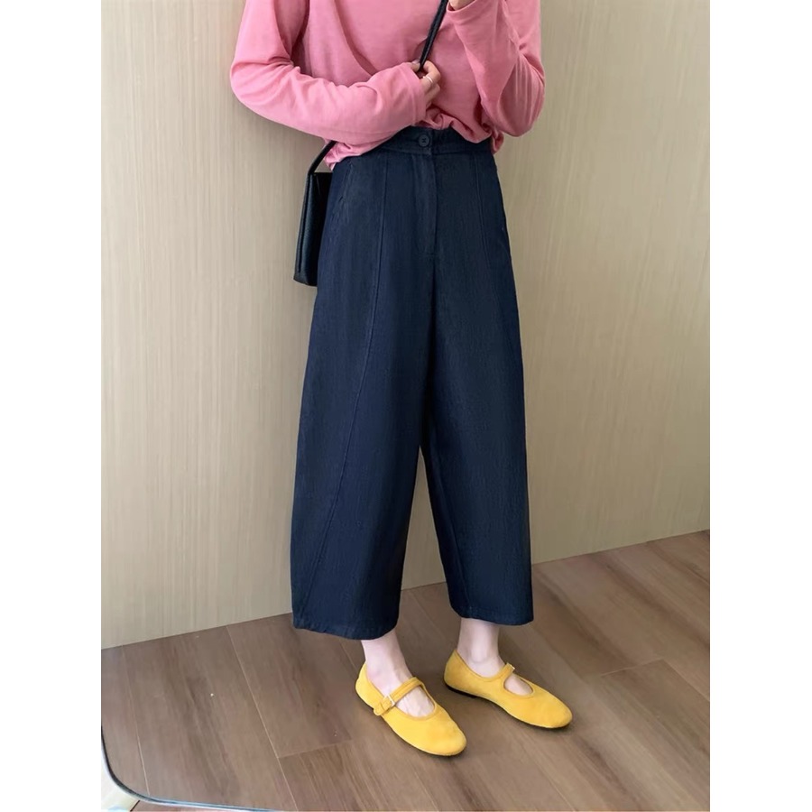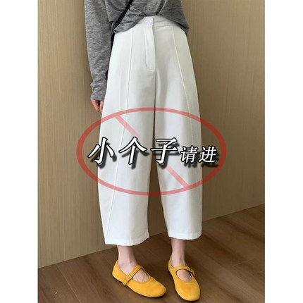 白色休闲奶奶裤女七分裤小个子秋季高腰宽松遮肉九分阔腿弯刀裤xs