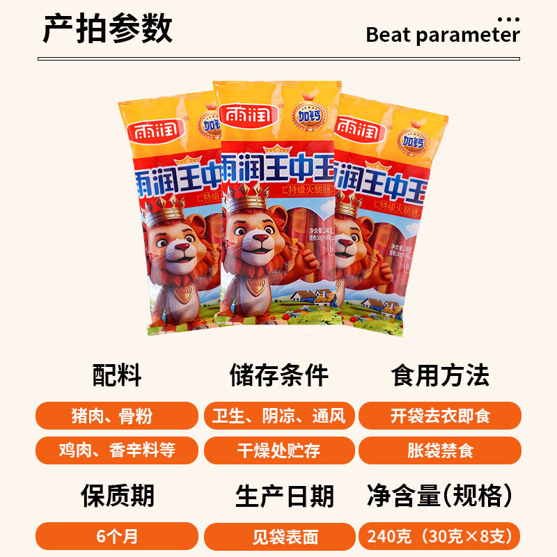 开袋即食整箱王中王火腿肠雨润