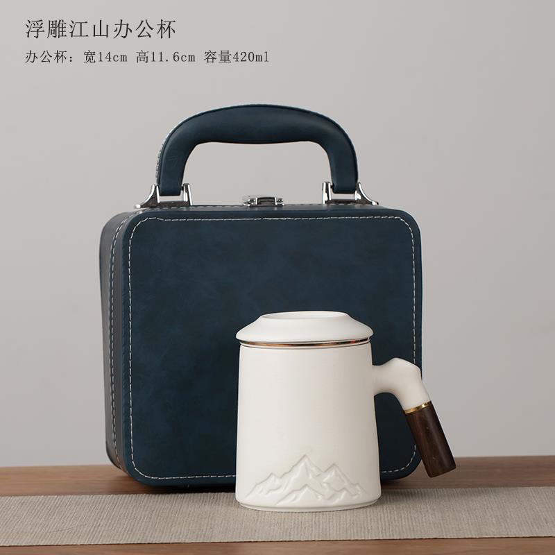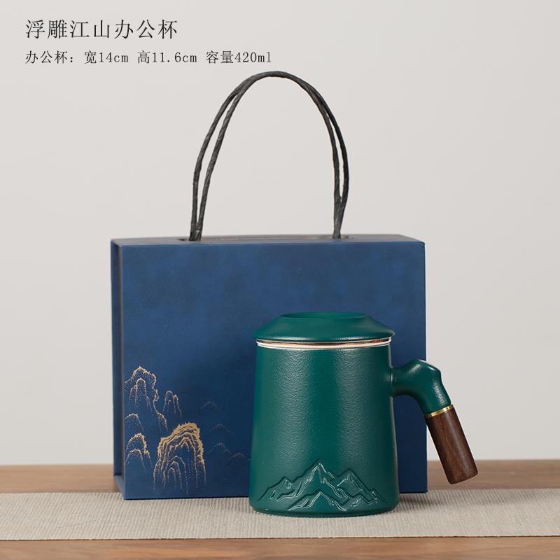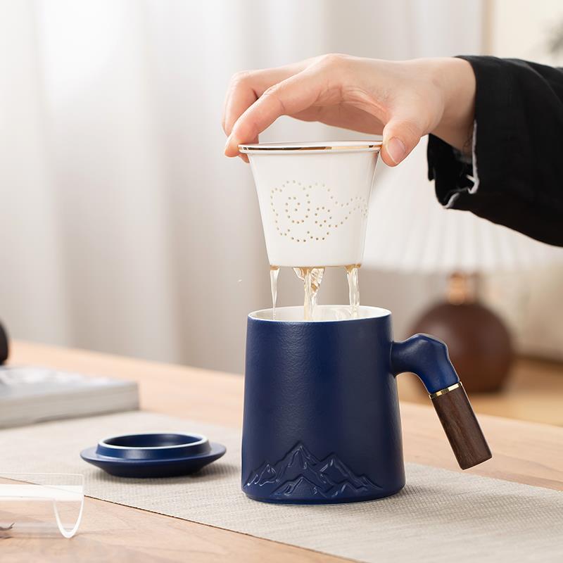 陶瓷茶水分离办公杯个人专用水杯马克杯带盖过滤泡茶杯子定制logo