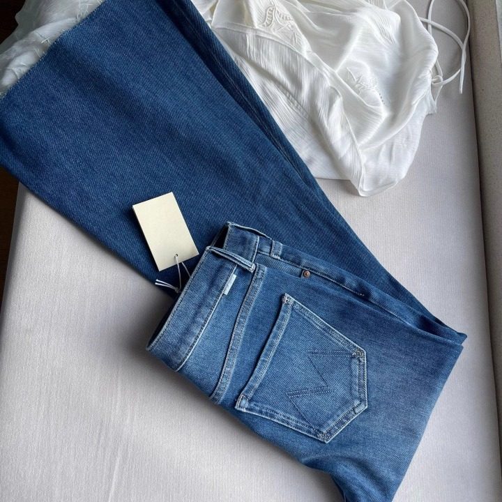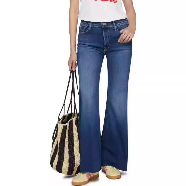 mo美系高腰弹力修身毛边牛仔裤喇叭裤长裤女显瘦显腿长气质小个子