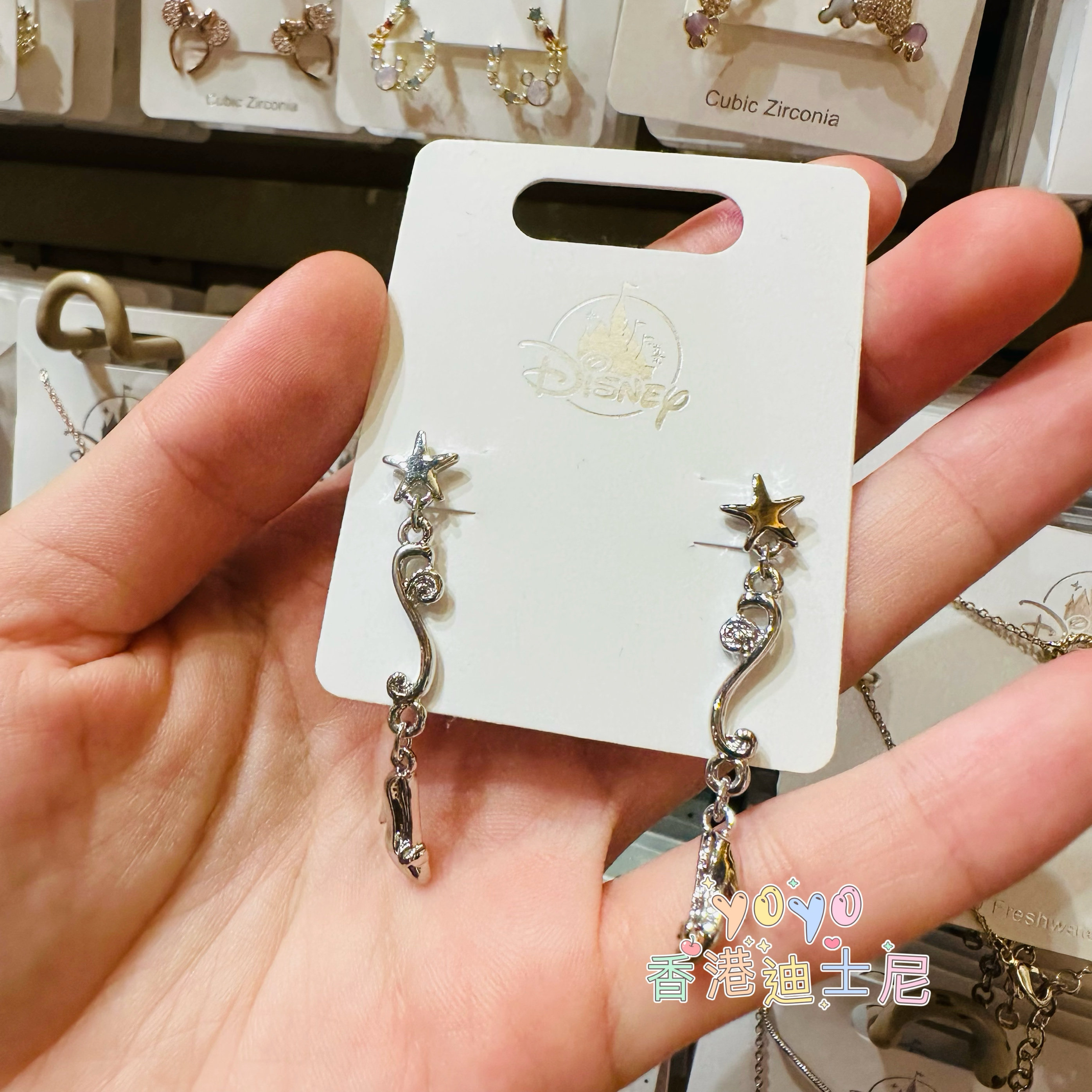 香港迪士尼 灰姑娘美人鱼长发公主 卡通项链 耳钉 戒指首饰饰品