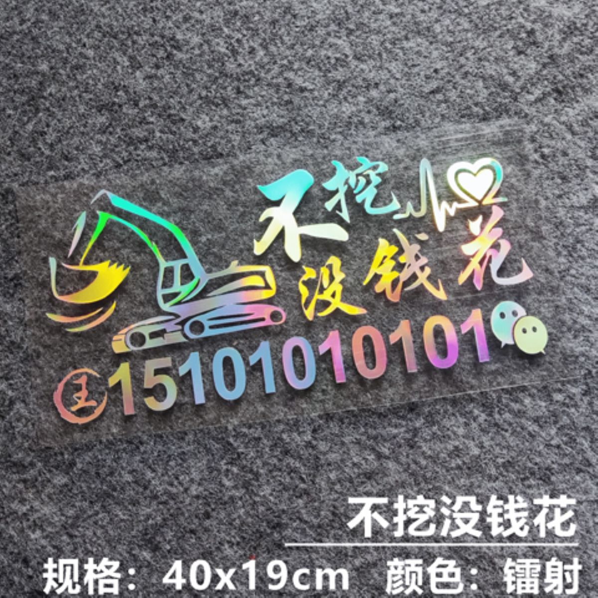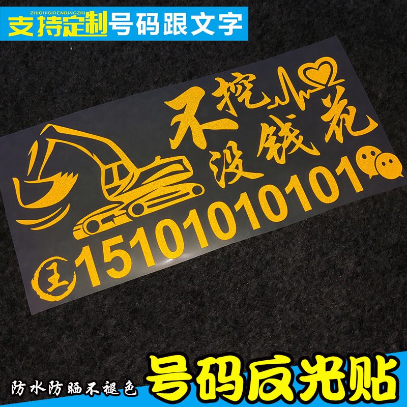 挖机出租吊车电话号码定制手机数字广告贴不挖没钱花搞笑反光车贴