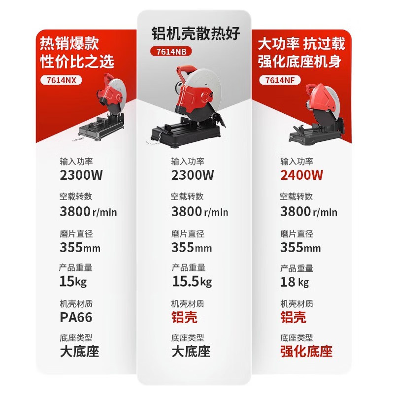KEN/锐奇355钢材机7614大功率工业型材切割机多功能锯台式切管机