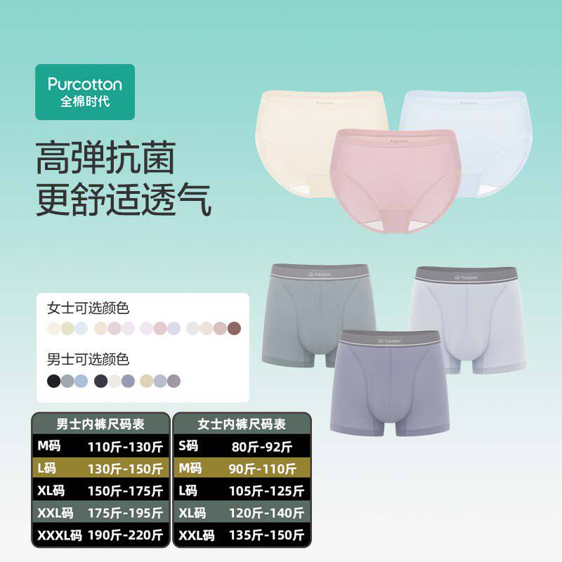 【李佳琦直播间时尚节】全棉时代女士男士内裤7A抗菌3条装