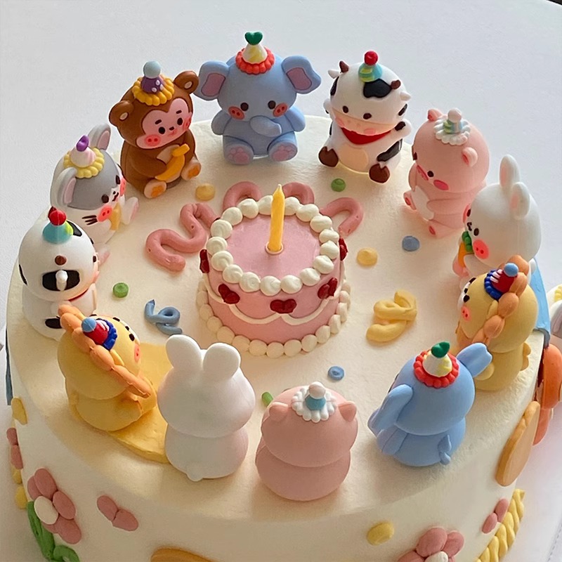 卡通软胶小动物蛋糕装饰摆件小熊小兔小老虎恐龙宝宝生日派对插件