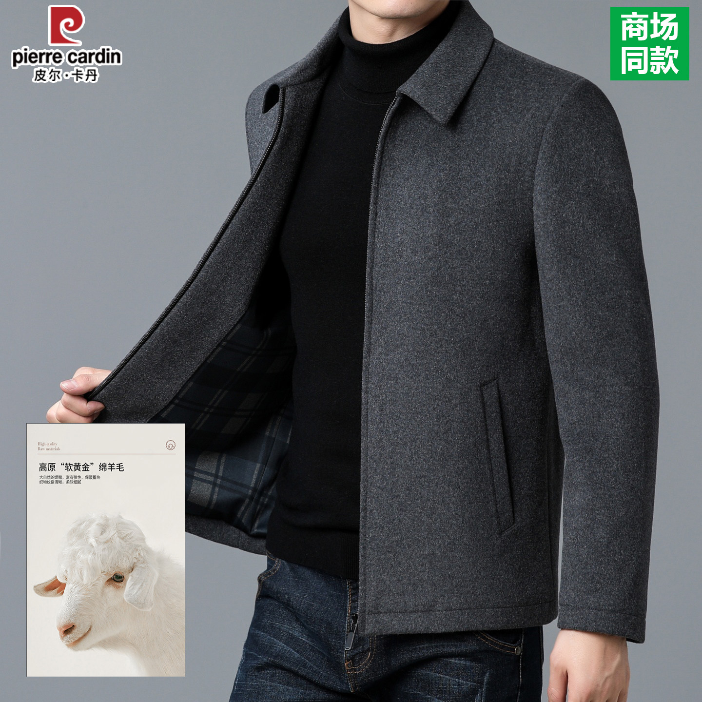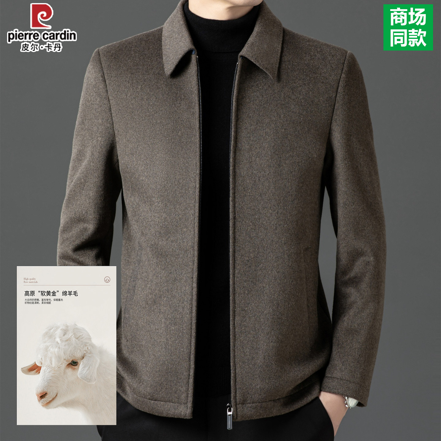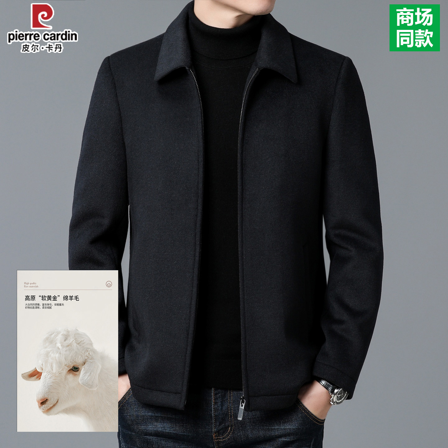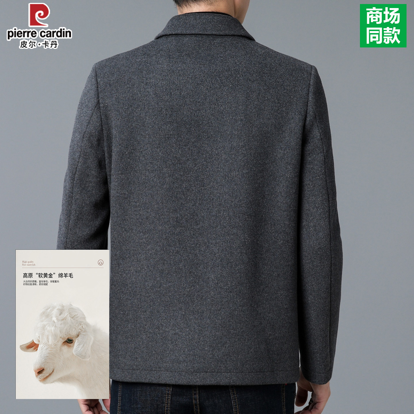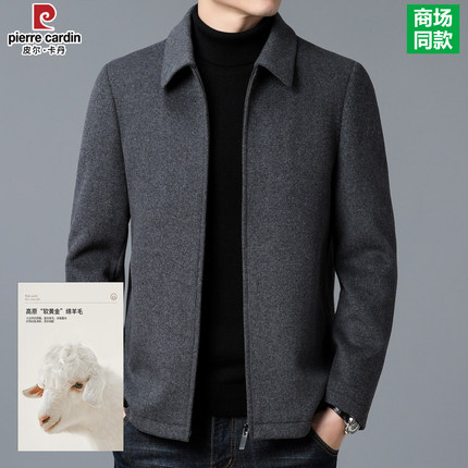 皮尔卡丹男士羊毛呢子夹克中年商务休闲纯色百搭外套爸爸装上衣