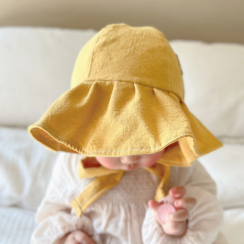 韩国进口婴儿帽子春秋纯棉婴幼儿遮阳帽男女宝宝花边护耳防风胎帽