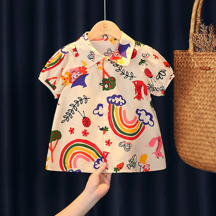 女童连衣裙夏季2025新款小女孩纯棉衬衫裙子宝宝洋气宽松短袖衬衣