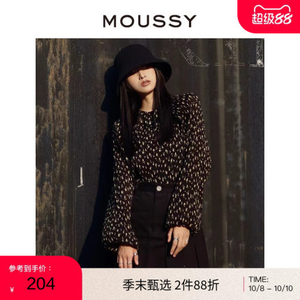 moussy奥莱 春夏气质甜美碎花系带长袖衬衫女010FAK30-7040