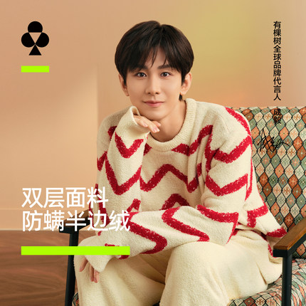 【代言人成毅同款】有棵树半边绒情侣红睡衣本命年冬防螨家居服女