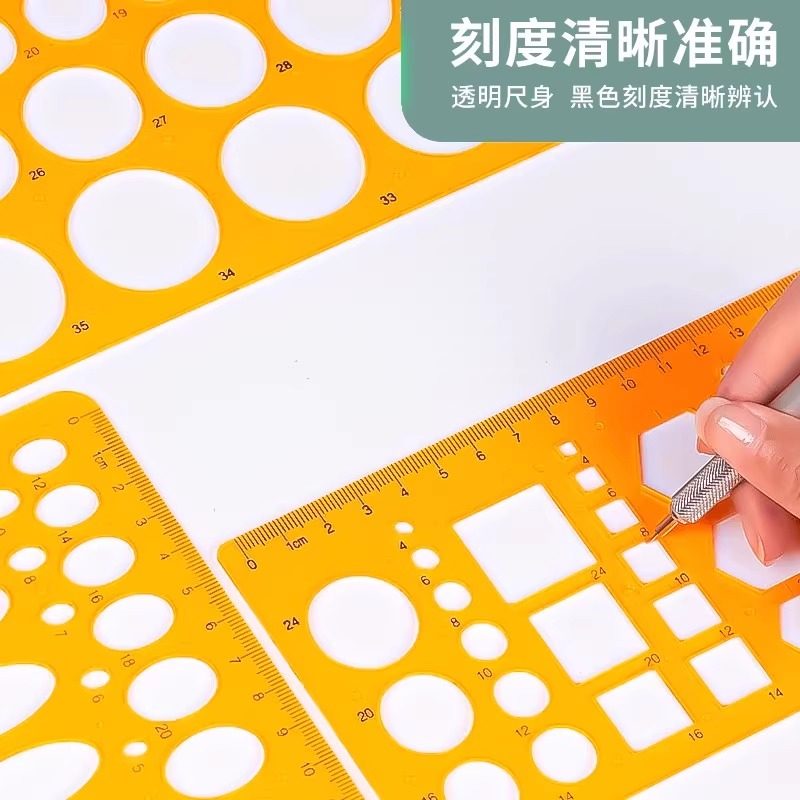 多功能绘图画圆模板尺大小圆形几何三角洞洞设计制图模版尺学生用
