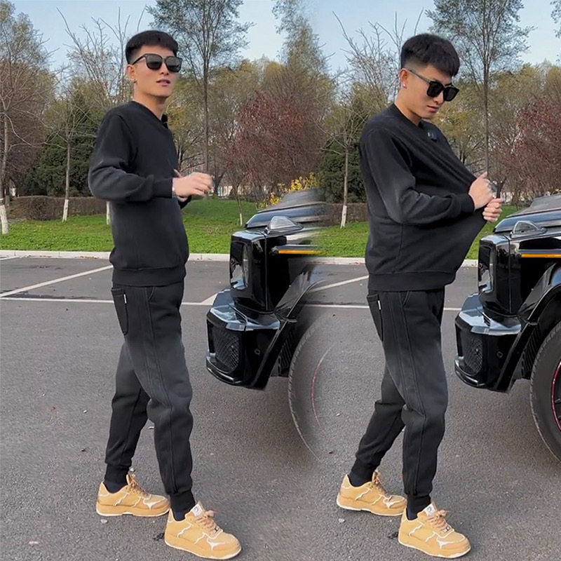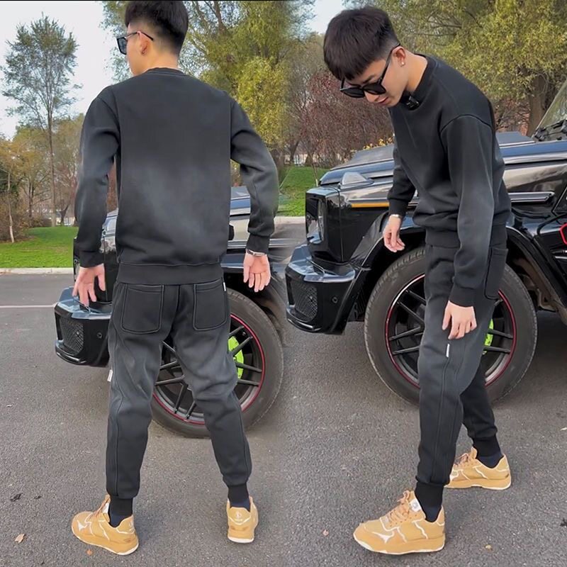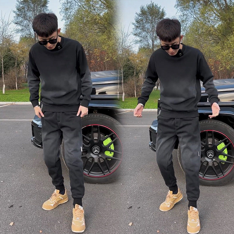 秋冬男士卫衣两件套高品质渐变运动长袖裤子休闲套装加绒加厚网红