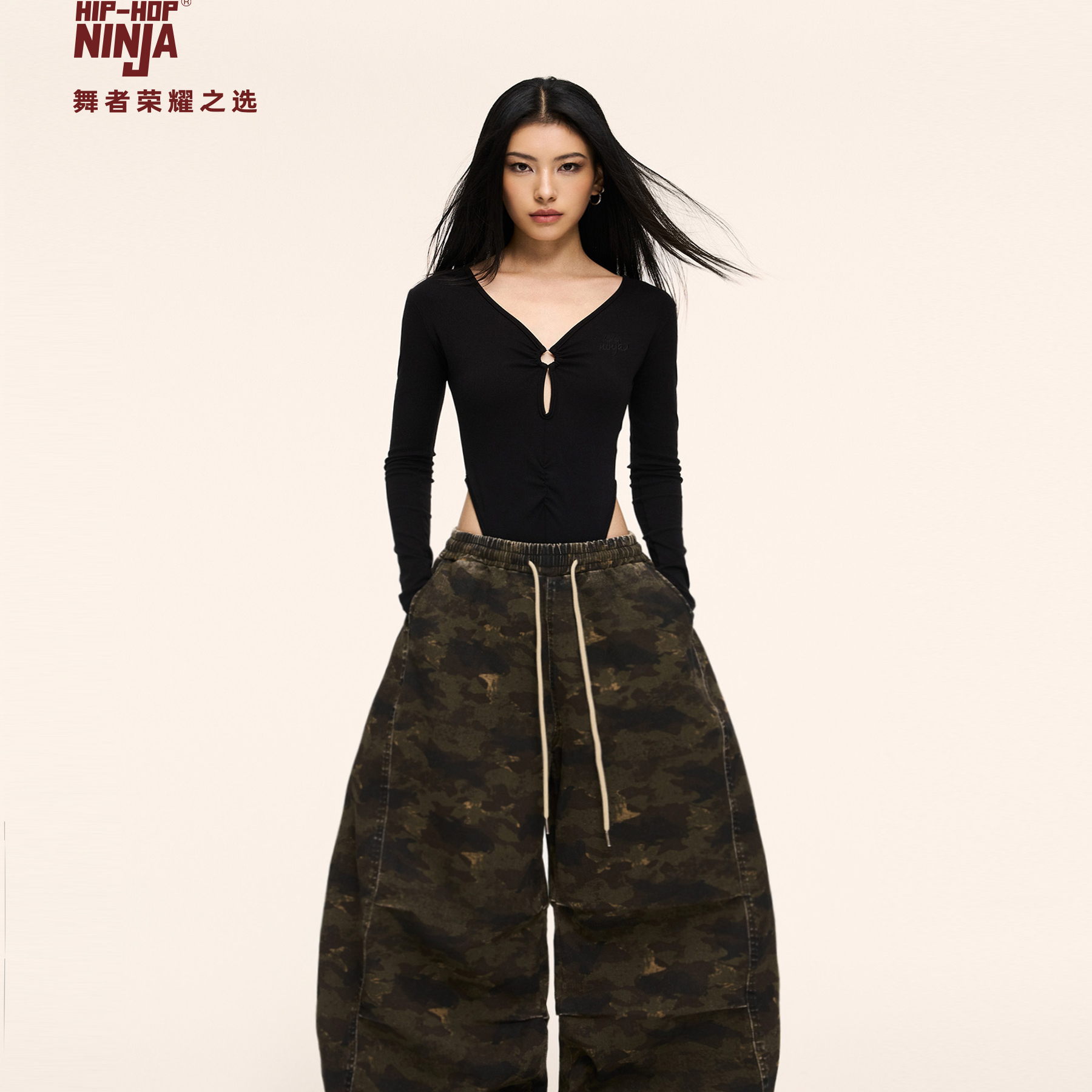 HIPHOP-NINJA【弹力迷彩】跳爵士舞嘻哈街舞美式伞兵工装长裤女