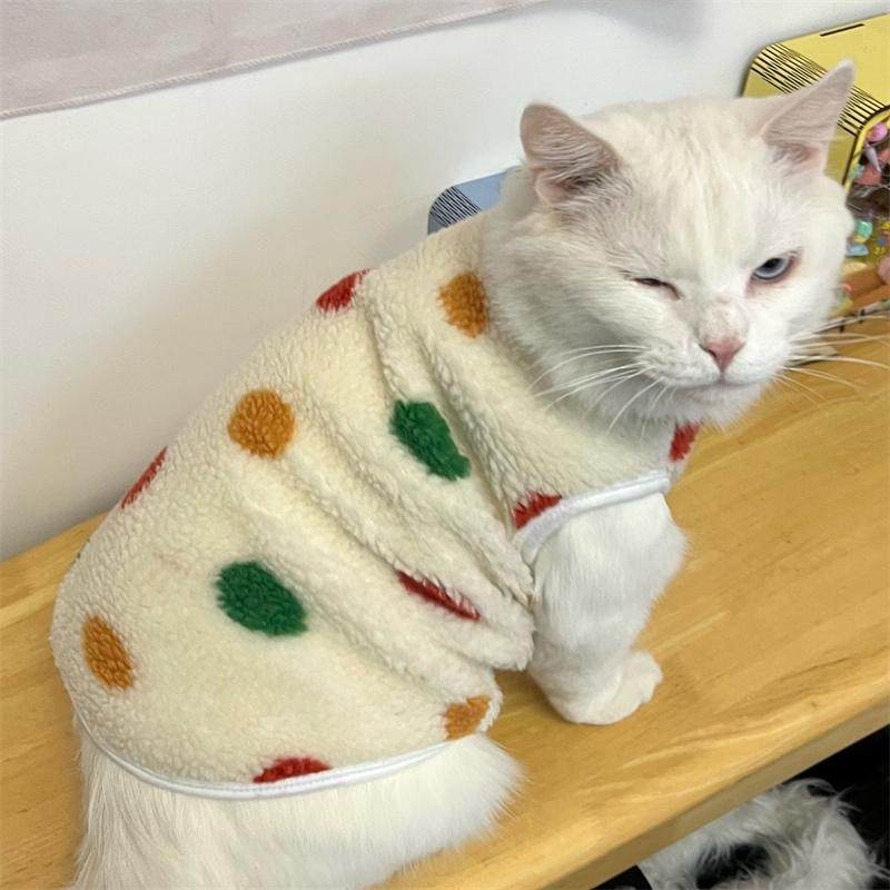 彩色波点宠物猫咪衣服保暖加厚防寒羊羔绒防脱不掉毛马甲背心棉衣
