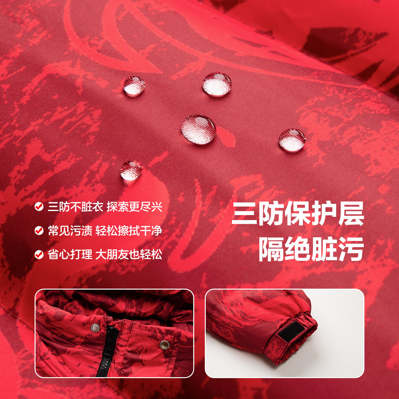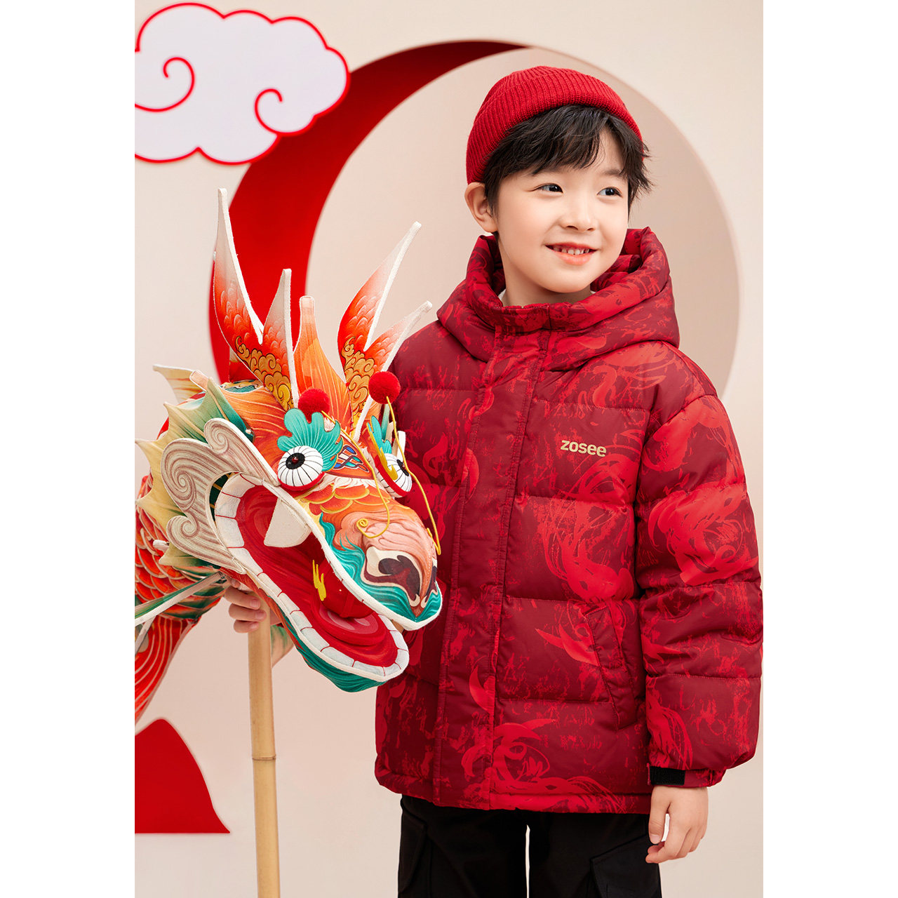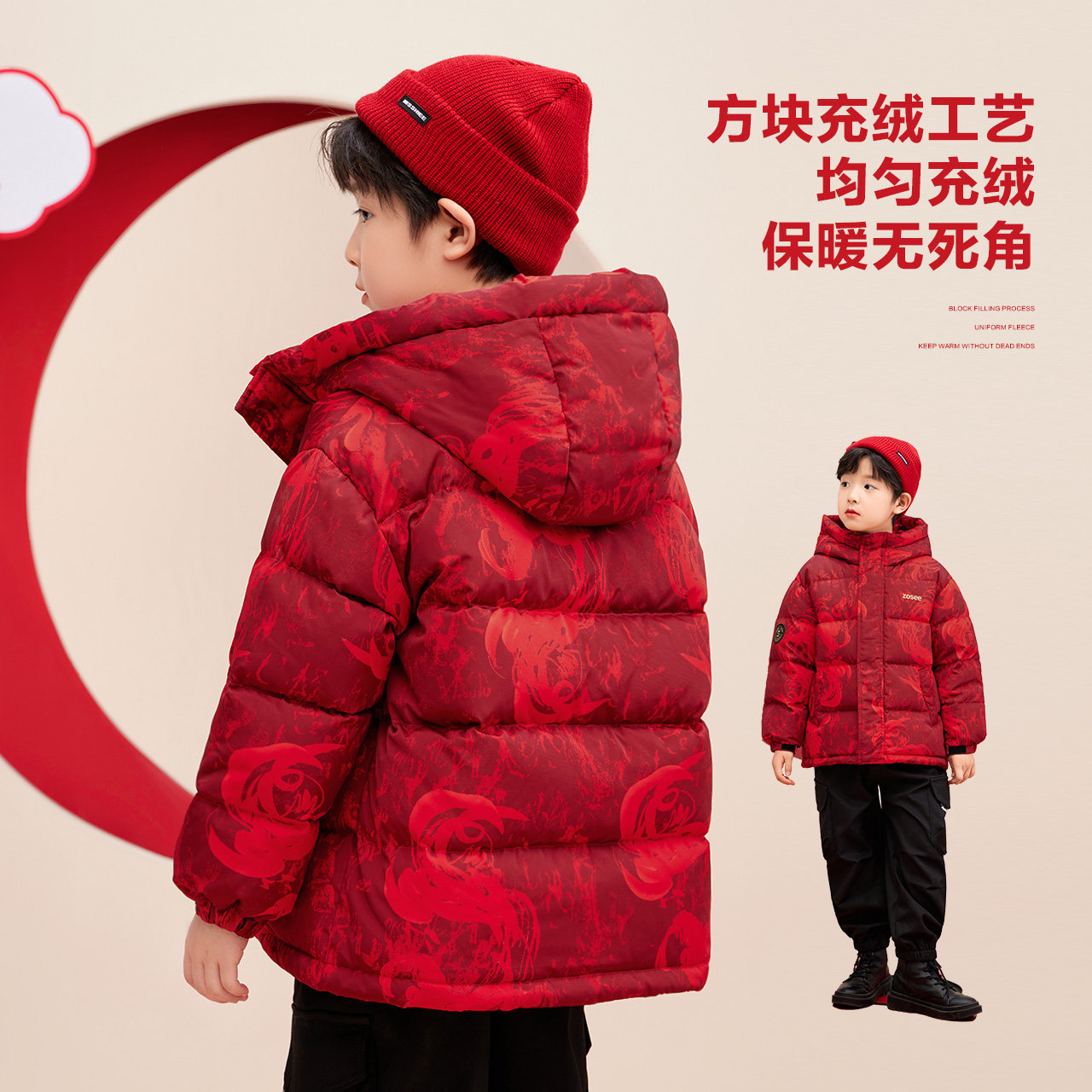 左西童装男童红色羽绒服冬季拜年服加厚2025新款儿童三防连帽外套