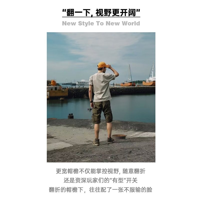 马登工装山系户外轻薄翻檐棒球帽遮阳休闲宽檐帽平檐鸭舌帽子男春
