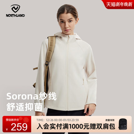 诺诗兰抓绒衣25新款女防风保暖加绒收腰修身上衣抑菌徒步登山外套