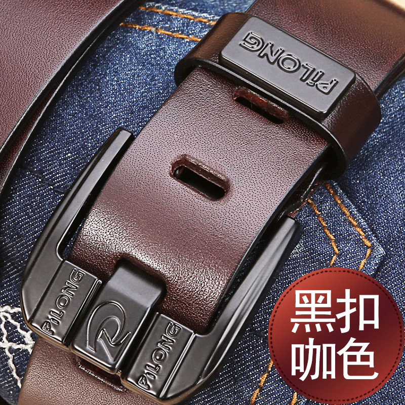皮隆 皮带男士真皮针扣青年腰带男头层牛皮裤带休闲商务加长