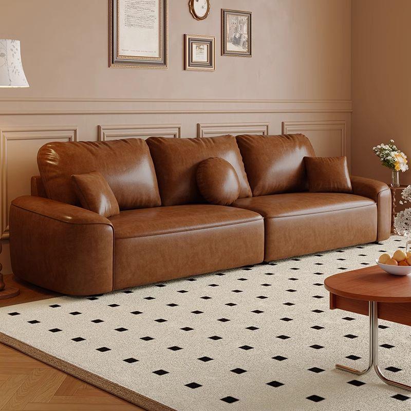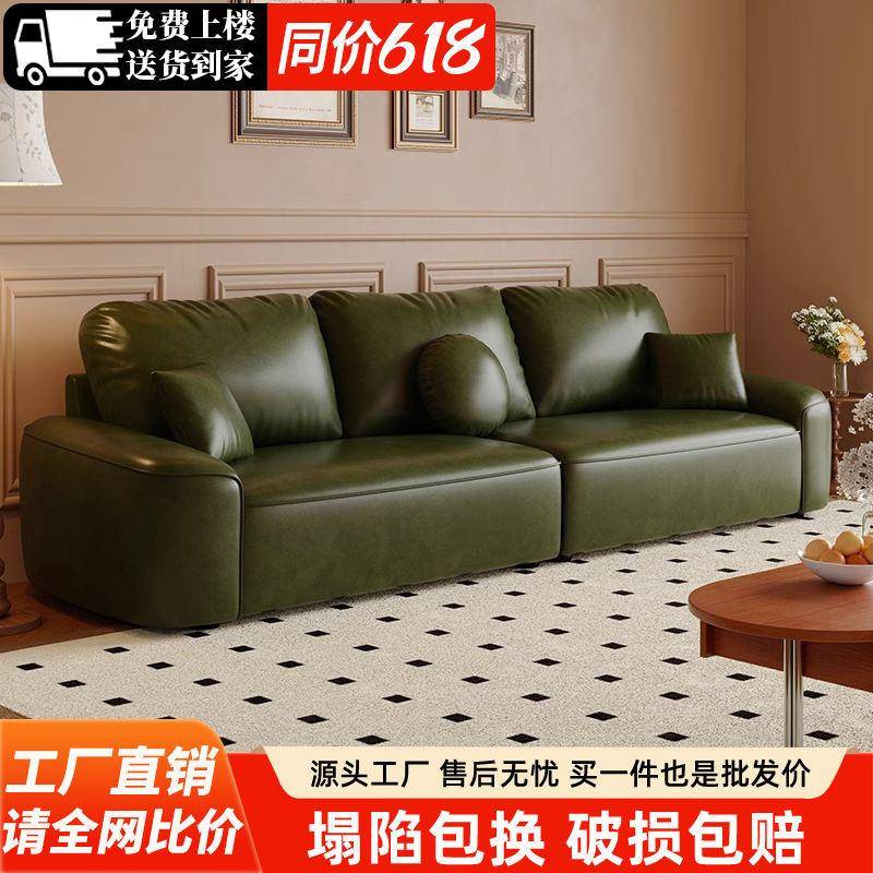 复古风猫抓油蜡皮沙发小户型客厅家用轻奢极简高级直排豆腐块沙发