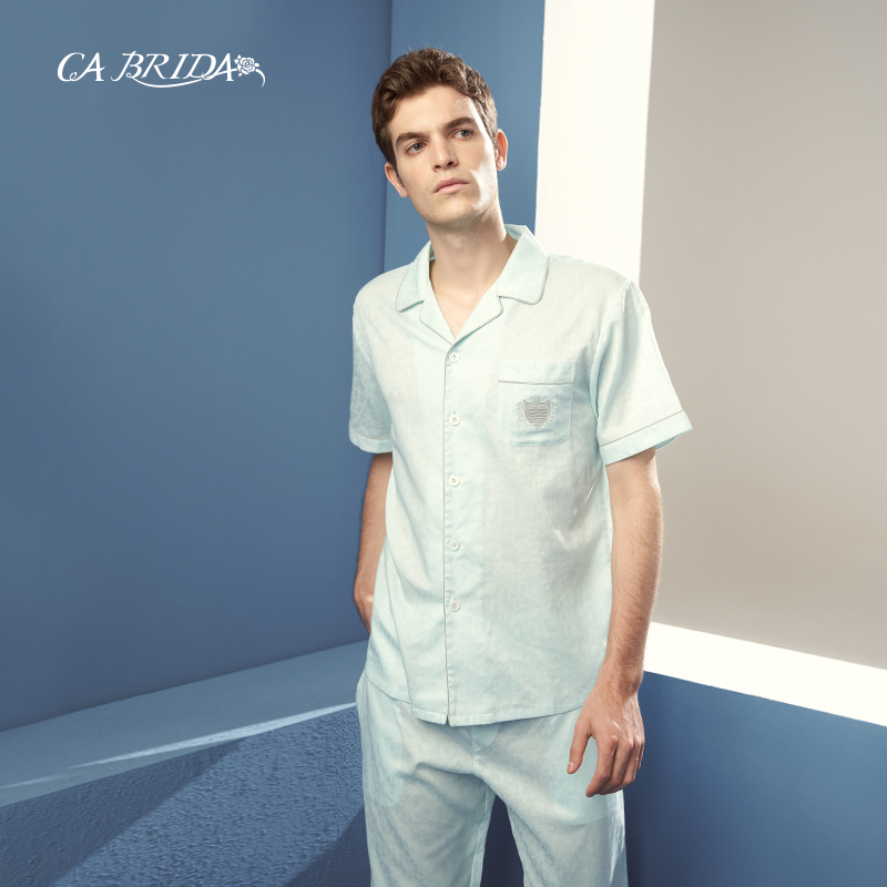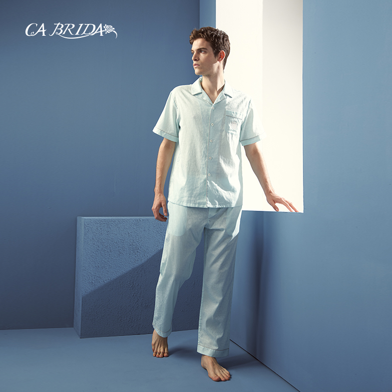 【奥莱瑕疵】嘉德丽亚男款衬衫短袖套装居家睡衣男CKS4B206AB2