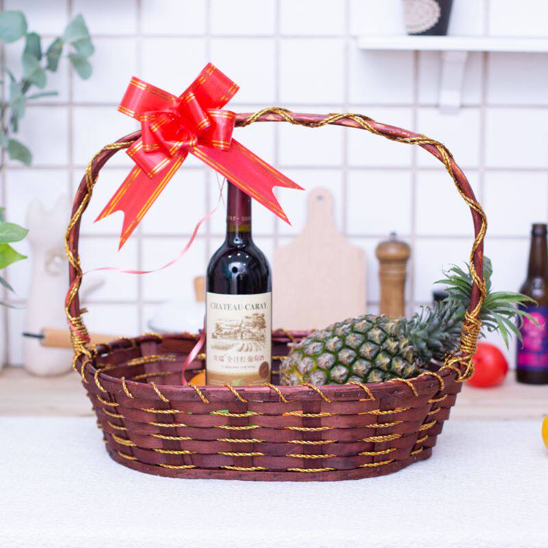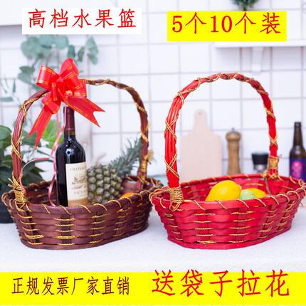 新款水果篮藤编手提篮送礼花篮采摘水果店竹篮包装超市蔬菜篮大号