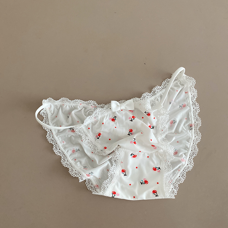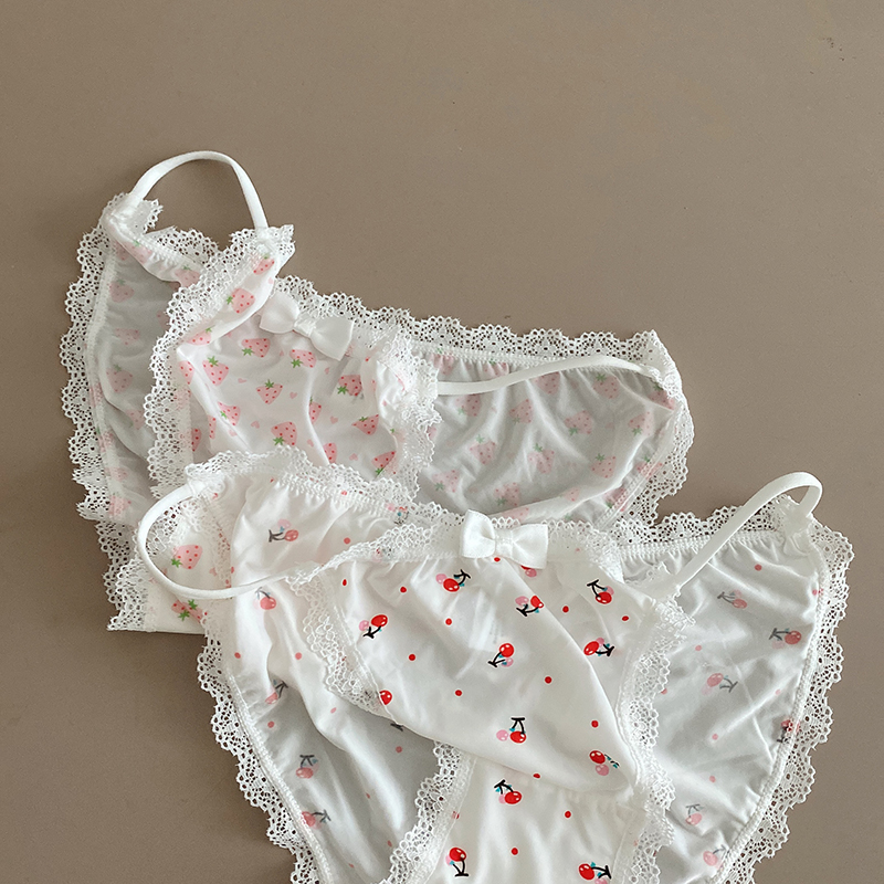 "草莓少女 浪漫请多一点"滑滑的牛奶丝亲肤细带低腰纯欲樱桃内裤